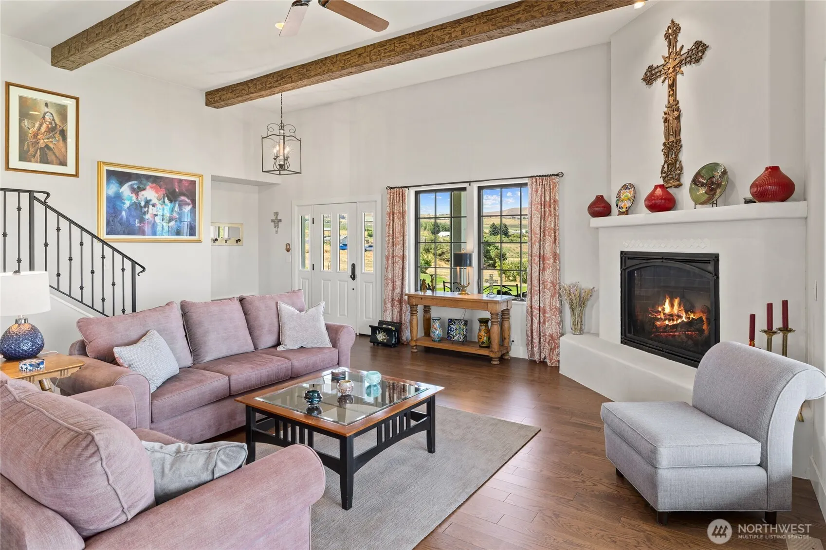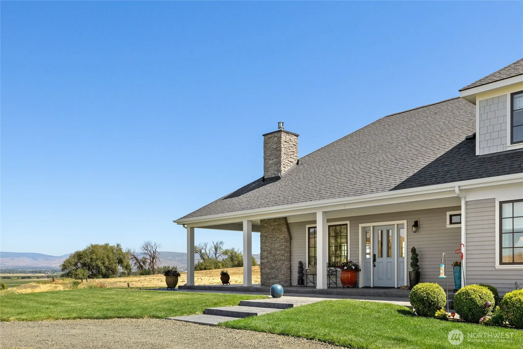 Designed with a nod to French Country, this custom 4 bed/2.5 bath, 2,961sqft quality built home is ready for it’s 2nd owner! With great attention to detail, this welcoming plan features high-end finishes w/ faux beams, solid doors & wide-plank oak floors, top-end hvac system, radiant bath floors, gas FP, & more. Open great room/kitchen/dining room views expand over the valley to the Mt Stuart range in the distance. Chef’s kitchen has 2 ovens & sinks, high-end appliances/cabinetry/countertops, & big pantry. Spacious primary suite on main floor w/ walk-in shower & large closet. Ample storage throughout. An oversized garage w/ workspace is perfect for projects/vehicles. Relax on the stamped concrete patio & enjoy this wonderful setting!