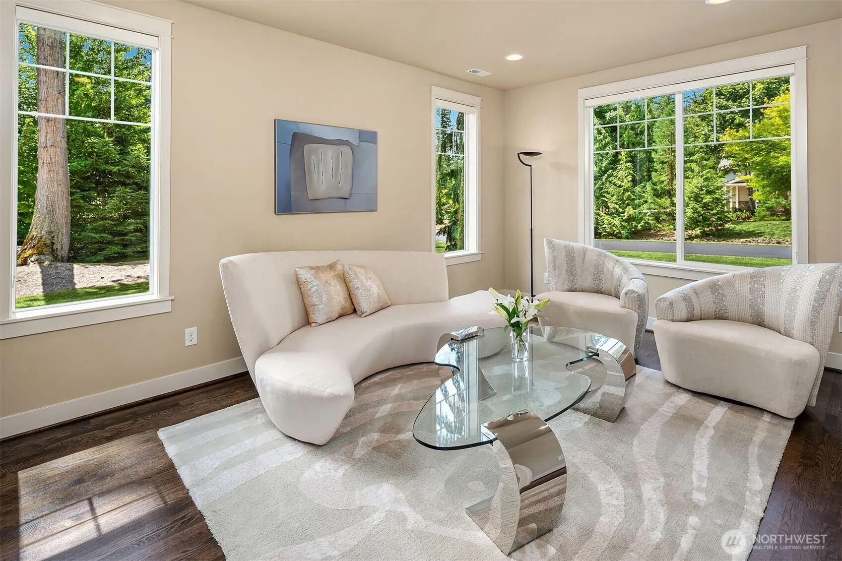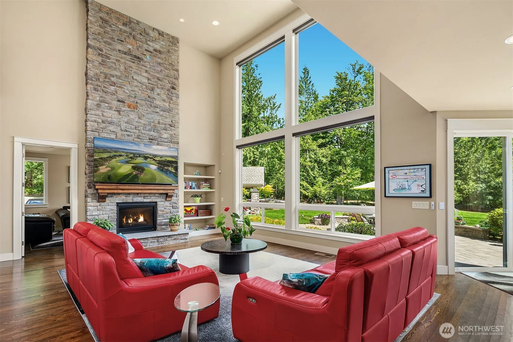 Luxury meets PNW tranquility on 3 private acres in gated Aldarra Ridge. An exceptional estate w/top-of-the-line finishes offers a seamless blend of modern upgrades, thoughtful design & natural beauty. This 5 Bedroom/4.75 Bath home features Dual Primary Suites -1 on the main level & a chef’s kitchen w/butler’s pantry. Soaring 20’ ceilings in the family room w/fireplace & large picture windows that amplify the natural light. Main level office & upstairs rec room offer ideal living spaces. Elegant touches, smart features, all provide comfortable living. Enjoy year-round entertaining under the covered gazebo w/BBQ, fridge, Bromic heaters & fire table. Manicured grounds & 4-car garage (2 attached, 2 detached) complete this exceptional retreat.