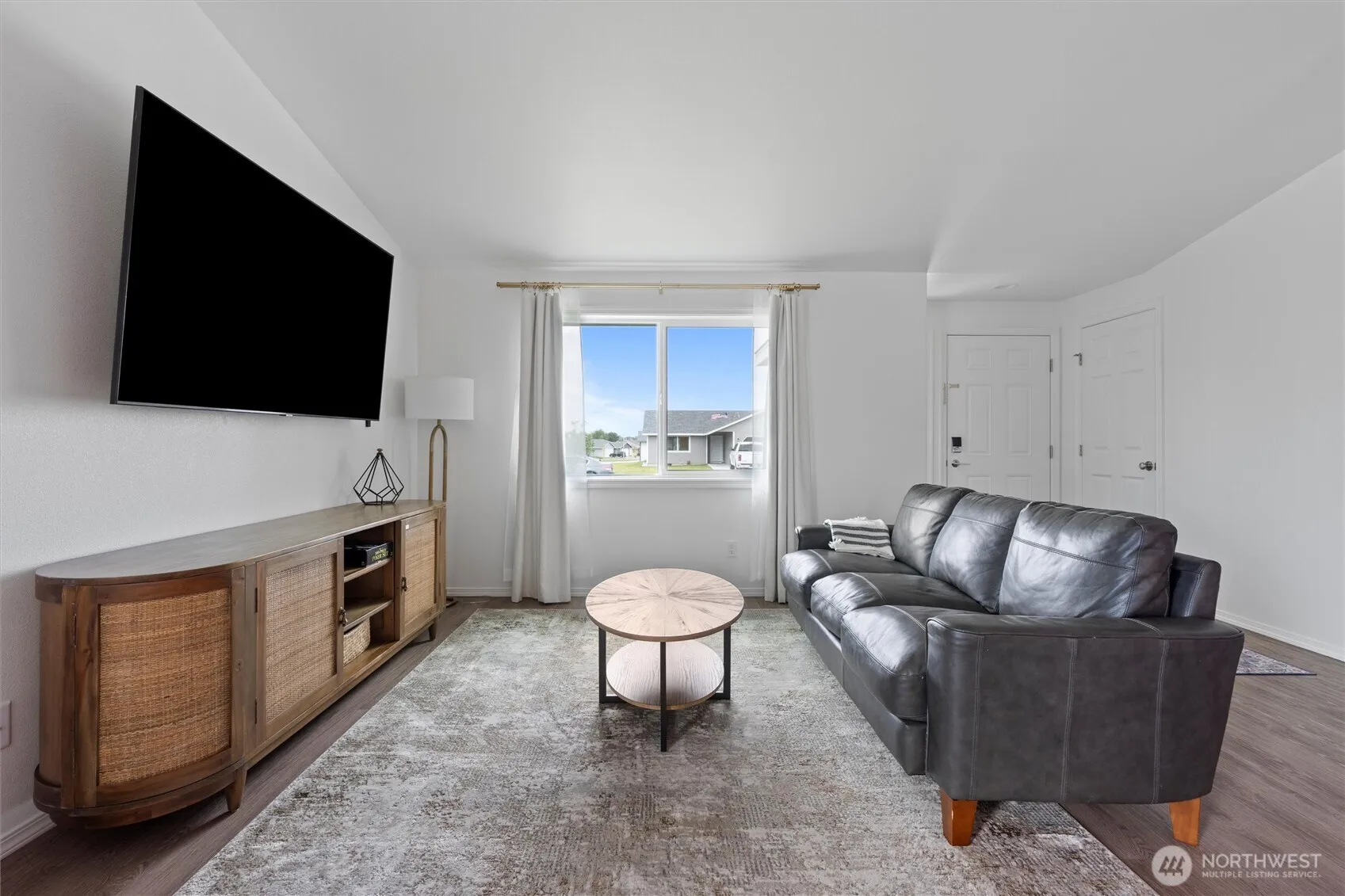 This gorgeous 3-bed 2-bath home sits in the heart of town and is nestled on a large corner lot. At over 1620 sqft, this property boasts an oversized primary room, a spacious kitchen and dining area, vaulted ceilings, and lots of windows for an abundance of natural light. The exterior features front sod & sprinklers, a low-maintenance backyard, and plenty of space for parking. Centrally located near shopping, restaurants, parks, schools, and entertainment, making it an ideal location. All stainless steel kitchen appliances stay, including Washer & Dryer. Don’t miss it & schedule a showing today!