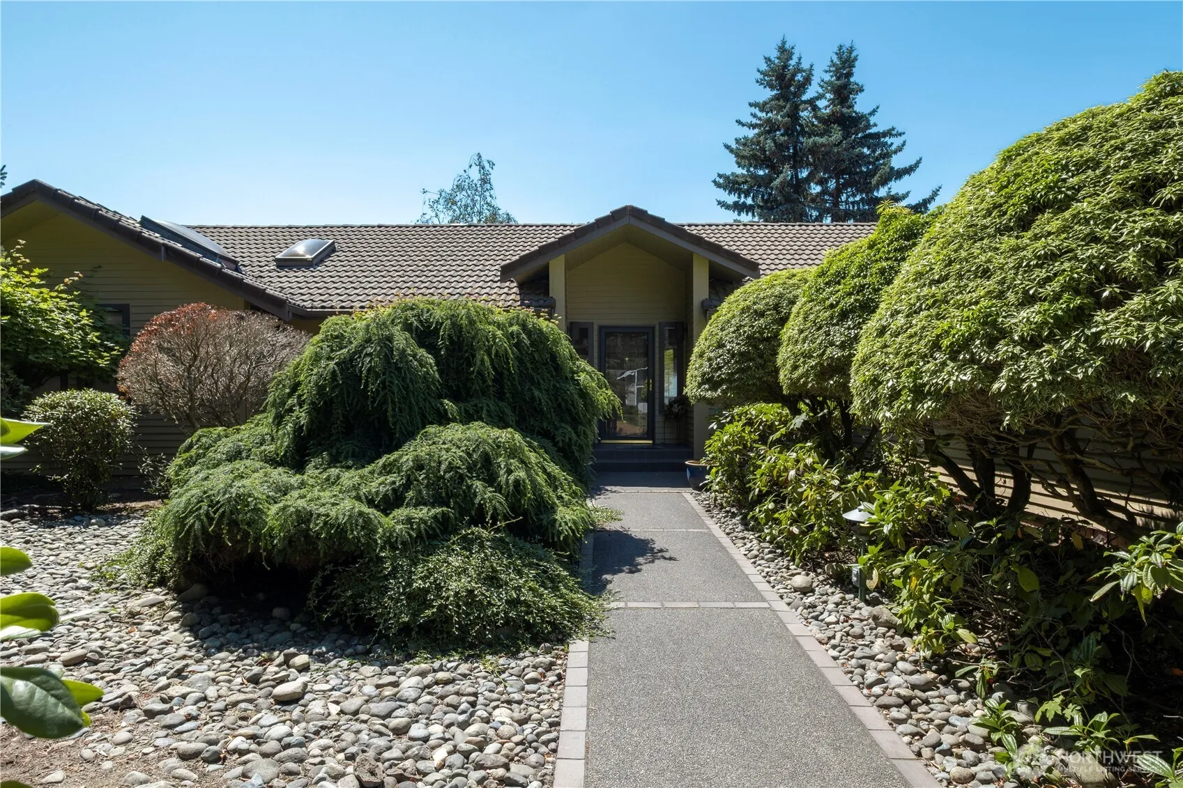 Beautifully maintained 3-bed 2.5 bath rambler in the sought-after Oakbrook community. Step inside to discover an open concept layout bathed in natural light, featuring vaulted ceilings and expansive windows that frame stunning Puget Sound views. This home seamlessly blends old world charm with modern updates, providing an atmosphere for both relaxation and entertaining. The spacious living area boasts of a cozy fireplace and the kitchen offers ample cabinetry and counter space. The great room serves as a dining area and bonus room. Primary suite serves as a private retreat, complete with an en-suite bathroom, walk in closet and private deck. Two car garage w/storage. Back deck features a retractable awning. Don’t miss this rare find!