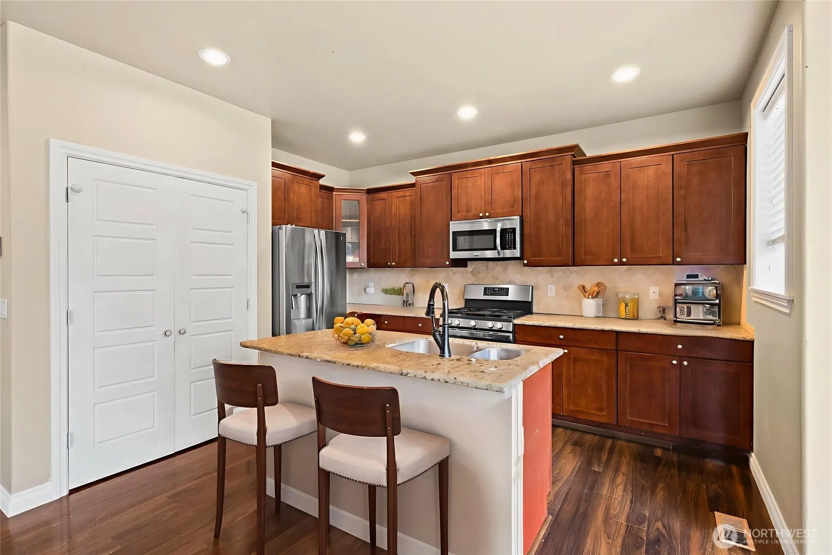 Welcome to this gorgeous 4 bedroom home. The open concept kitchen shines with granite counterstops, full backsplash, SS appliances & ample prep space—perfect for entertaining. Sun-filled rooms create a warm, inviting atmosphere, while the gas fireplace adds cozy charm. Stay cool all summer with A/C! The primary suite offers a walk-in closet & private bath with a soaker tub & separate walk-in shower. Fresh interior paint. This home is truly turn-key! Bring your landscaping dreams to life in the fully fenced back yard w/patio, ready for your summertime BBQ’s. Great location, walking distance to Yelm High and Middle school. Close to schools, shopping, & an easy commute to JBLM.