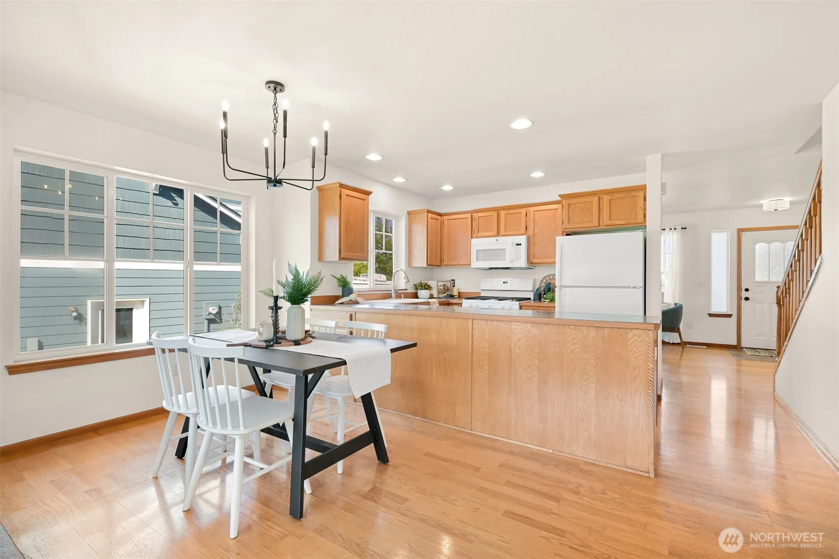 Welcome to your new sanctuary in the sought-after Vista Ridge neighborhood. This well maintained Homestead-built home with recent updates including fresh paint, a new roof, and a new furnace with air conditioning is move-in ready. The main floor features a spacious primary suite, ideal for those considering aging in place. Extensive real oak hardwood flooring throughout, a kitchen that opens to the family room with peaceful park views, and a versatile front living or dining room are an added bonus. Upstairs, you’ll find 2 more bedrooms and a 3/4 bath. Enjoy the lush, private, fenced backyard with raised beds, perfect for gardening. With easy access to I-5, minutes from Bellingham, this home is ideally located for convenience and comfort.