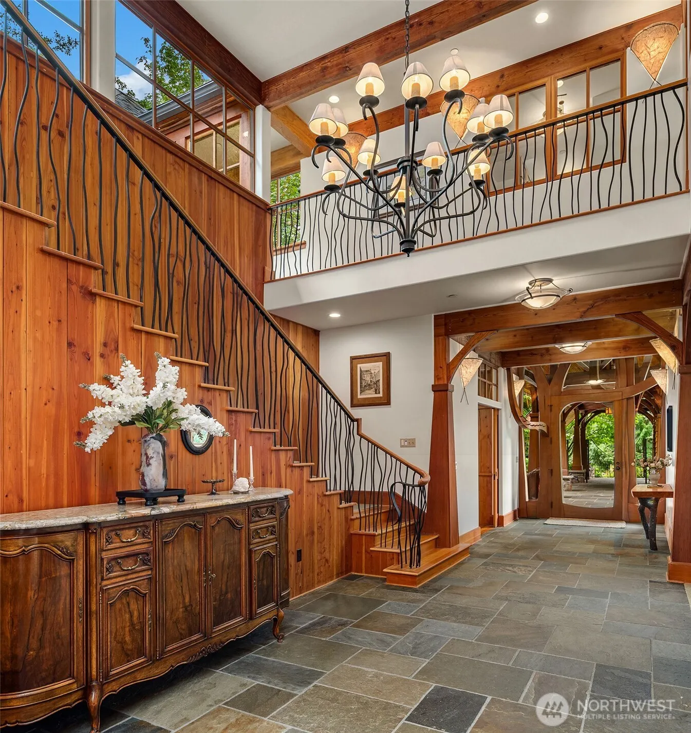 Welcome to Stillwater Estate, a singular legacy property just minutes from Seattle. Tucked deep within 50 acres of protected forest and meadows, approach through a custom-built bridge and enter a world apart-where timeless craftsmanship, natural beauty, and architectural grace converge. The main residence is a stunning expression of Western design, clad in warmth and set amid lush gardens and delightful outdoor living spaces. Stone and timber details echo the landscape, from the handcrafted posts of the covered breezeway to the slate and natural finishes throughout. Inside, expansive windows and rich woodwork frame views of tranquil ponds and sun-dappled lawns. Stillwater is more than an estate. It’s a story written in nature—paradise.