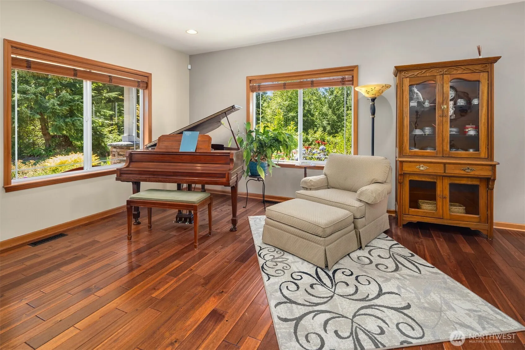 Custom home located on 5 acres. 2819 sqft, 4 bedrooms, 3.25 baths. Hardwoods throughout most of main floor. Living room w/gas fireplace. Custom mantle and surround tile. Chef’s kitchen, newer SS appliances, granite counter, eating area and sitting bar. Separate dining room. Large family room, could be guest suite. 1/2 bath and laundry room with 3/4 bath. Upstairs primary with 5 piece bath and walk-in closet. 3 other bedrooms served w/full bath. Outside oasis. Patio 50×25, 20×25 covered includes floor to ceiling stone fireplace and kitchen. BBQ, flat iron grill, fridge, DW, cabinets, double sink. Granite counter w/seating. Fire pit. 20×20 workshop (barn) 14×16 shed. 6×8 green house. Enclosed 30×50 garden. Fruit trees. 3 car garage paradise.