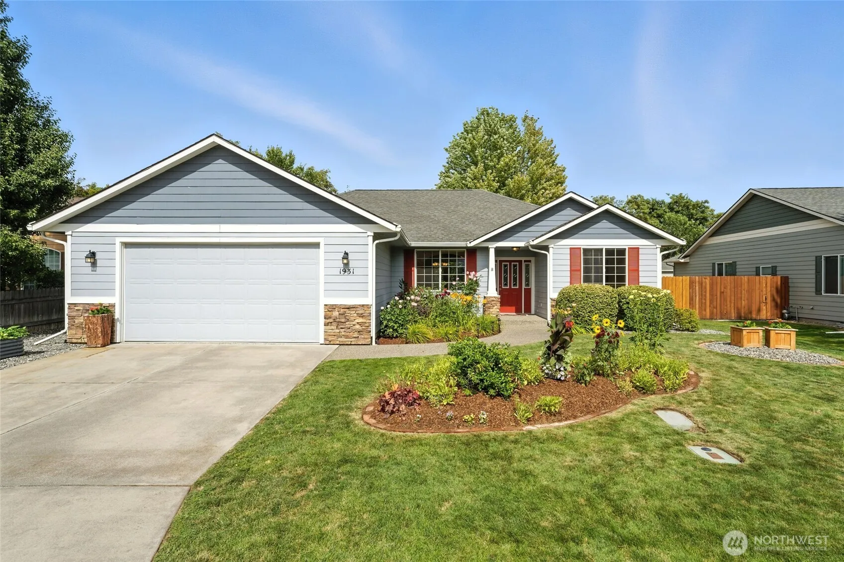 Immaculate one-owner, one-level home with a wonderful open floor plan! Enjoy both formal dining and a cozy dining nook, a spacious kitchen with breakfast bar, and a warm gas fireplace in the living area. The desirable split-bedroom design offers privacy, with the primary suite on one side featuring a large bathroom and walk-in closet, and two additional bedrooms on the other. Step outside to a beautifully landscaped, peaceful backyard with vibrant flowers, garden space, and a covered patio—perfect for relaxing or entertaining in a secluded setting. The oversized finished garage is heated/cooled and ideal for projects or extra storage. A rare gem offering comfort, functionality, and pride of ownership!