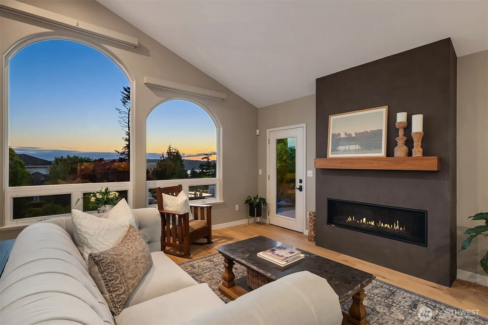 Wake to your morning coffee catching the sunrise off of the Olympic mountains, & relaxing w/a book or sharing a bottle of wine & conversation on the large patio while the sun sets over Possession Sound. Designed for both elegance & ease, the great room’s four arch-top windows frame dreamy year-round views, flooding the space w/golden hues. Rich hardwood floors guide you through thoughtfully remodeled spaces, including a sophisticated kitchen &spa-like baths adorned with floor-to-ceiling tile. Custom closet organizers for effortless order. oversized 2-car garage offers space for hobbies. The home has impeccably designed & mature landscape w/ Koi pond, garden & driveway lighting, and a sprinkler system. Too much to list. See before its gone.