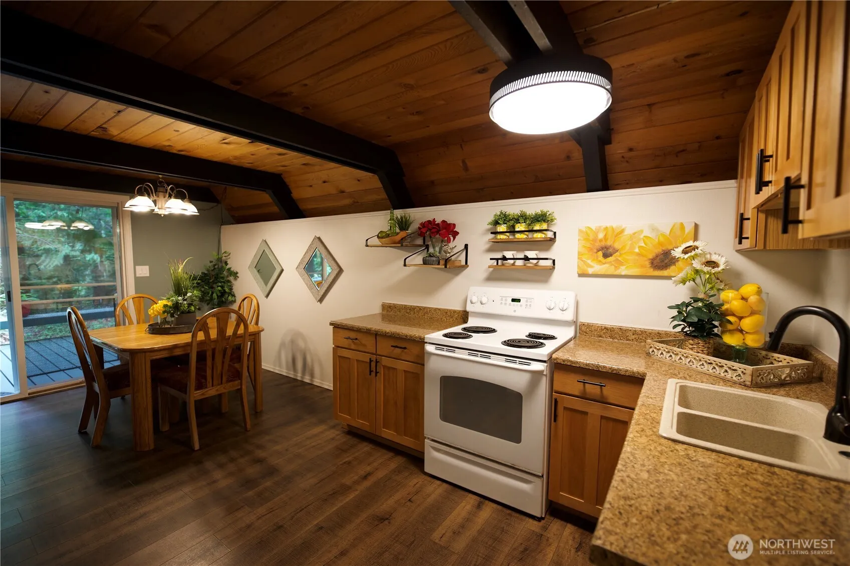 Lovely cabin nestled in the forest only a 100-yard walk to gorgeous Lake Cushman, Lake Cushman Park, and two boat launches just minutes away! Located in the coveted Mt. Rose Village, this cabin truly is the perfect getaway or the perfect home for full-time living! This beautiful cabin boasts updated flooring, two bedrooms plus a bonus room area, a gas stove that can be operated via the NEST (which stays!) and will keep you cozy on winter evenings! The open kitchen is spacious, the primary bedroom is on the main floor, great deck for entertaining, additional upper deck to enjoy a morning cup of coffee, outbuilding has tons of storage, and the location is close to boating, hiking, fishing, golfing and much more!