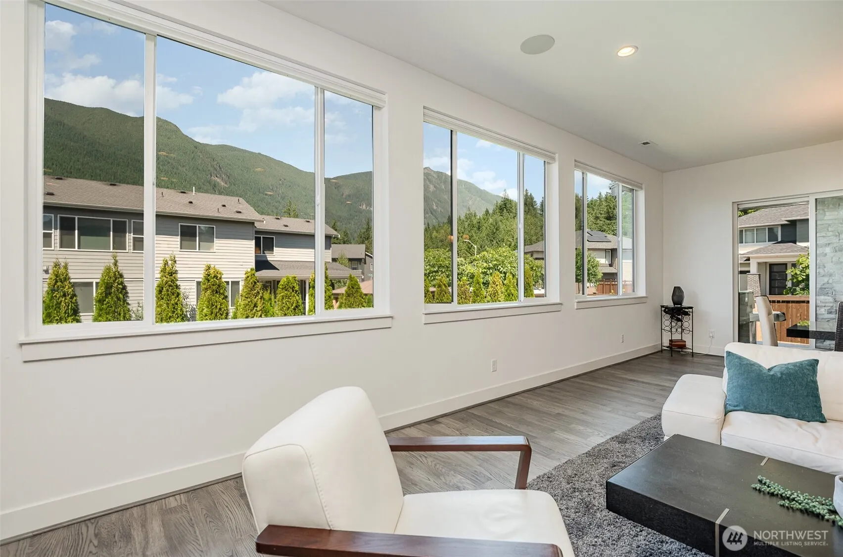 Enjoy front-row views of Mount Si through a stunning wall of windows in this modern corner-lot home. Just minutes from the Snoqualmie River for paddle boarding or floating, and close to parks and trails. An open layout, stylish finishes, and a covered outdoor space with a gas fireplace makes this home perfect for relaxing or entertaining year-round in scenic North Bend.