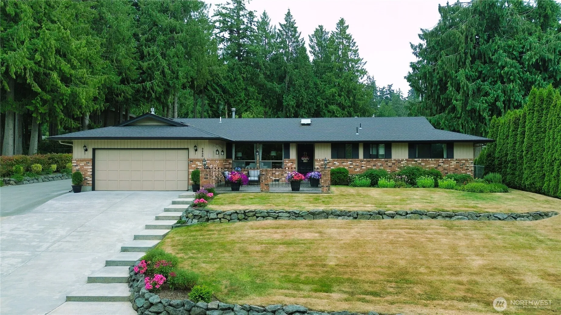 Beautifully updated & meticulously maintained rambler! Solar Panels = $8 per month power bill. One-level living at its finest. Gorgeous kitchen w/9 foot window overlooking the colored stamped patio & yard, quartz counters, deep sink, double oven, trash compactor, soft close drawers & doors. Spacious Primary Suite w/2 closets & updated bath off. New windows, interior doors & trim. Large main bath recently renovated w/tile & quartz. Newer roof. 2 skylites and canned lighting throughout. Generator & extra fridge included. Cozy gas fireplace in family room. French doors to patio-perfect for entertaining. Huge driveway – park your boat or RV. Stamped concrete front courtyard. Quiet street close to Bakerview Park. Move-in Ready!!