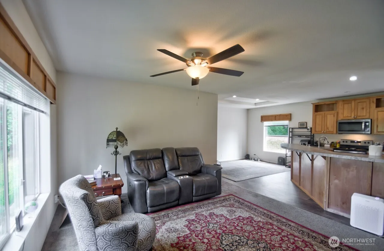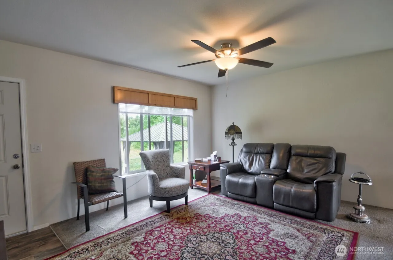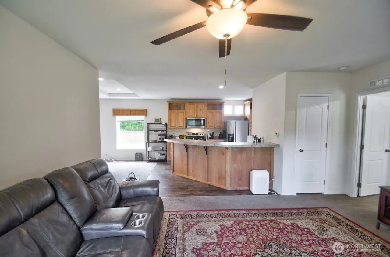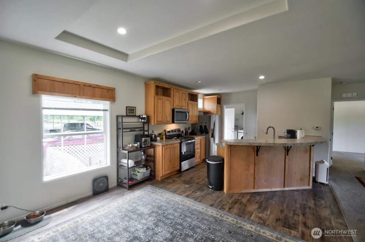 Very clean 2021 home, 1296 sq ft. 3 bedroom 2 bath, kitchen with eating bar, open concept living, kitchen dining combo. Large primary bath with walk in closet. 2 car carport, shop with cement floor, large 2 story storage shed, 40 ft storage container. All on 4.8 +/- acres with no flood river frontage. Perfect for swimming or picnicking in the shade.
