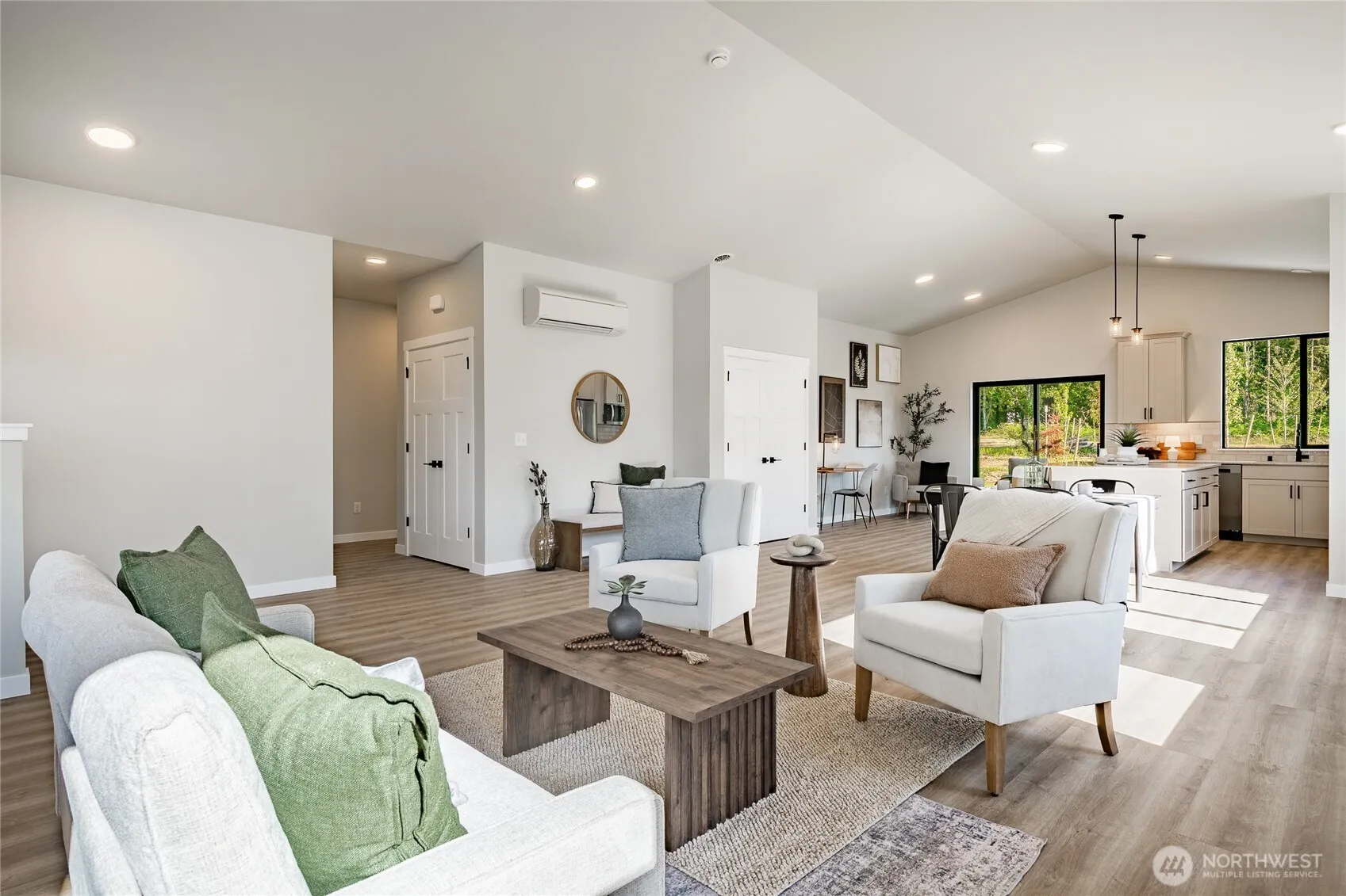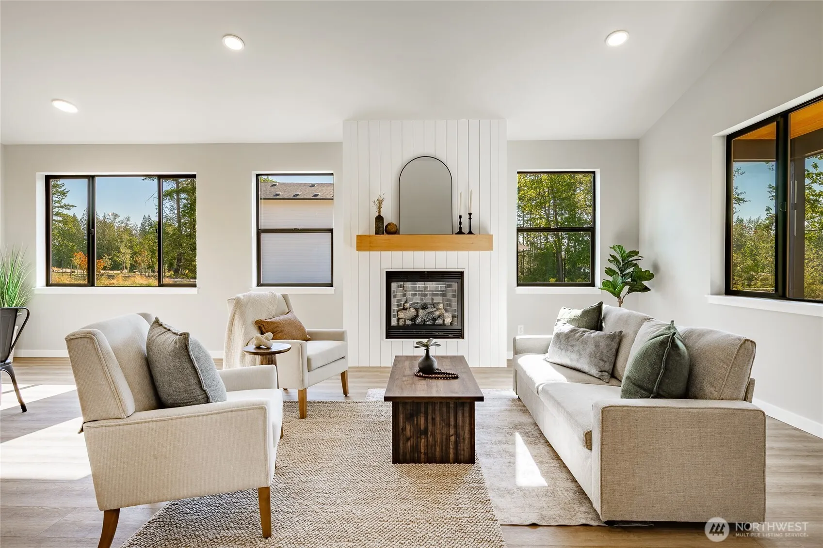 Enjoy single-level living in this 3-bedroom, 2-bath home at The Ridge, featuring tall ceilings, a propane fireplace, and a propane gas range for cooking. The open-concept design features granite counters, tile backsplash, shaker cabinets, luxury vinyl plank flooring, and a glass shower door in the primary en-suite. A mini-split heat pump provides efficient heating and cooling. Step outside to a covered back patio that overlooks the reserve tract—enjoy permanent green space right behind your home. Located minutes from I-5 and downtown Blaine in a dog-friendly neighborhood with sidewalks, trails, and pet stations. *LIMITED-TIME SAVINGS: Up to $5,000 Seller Credit + .75% Preferred Lender Credit.
