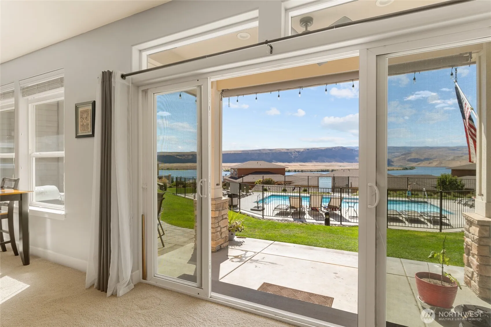Sunserra allows for AIRBNB and any other means of rentals. Light-filled 2-bedroom, 2-bath home w/ high ceilings, an open-concept layout, and wall of windows that showcase stunning views of the Columbia River and community pool. Spacious primary suite includes ensuite bath with large soaking tub. Enjoy outdoor living on private patio—perfect for relaxing, BBQs, or taking in the incredible scenery. Detached, fully finished and insulated garage measures 11’6” x 29’, offering ample space for vehicles, boats, or recreational gear. Home is being sold fully furnished and turnkey—bring your suitcase and start enjoying your new home immediately. Possibility to utilize as vacation rental and use both as an investment, and for personal use.