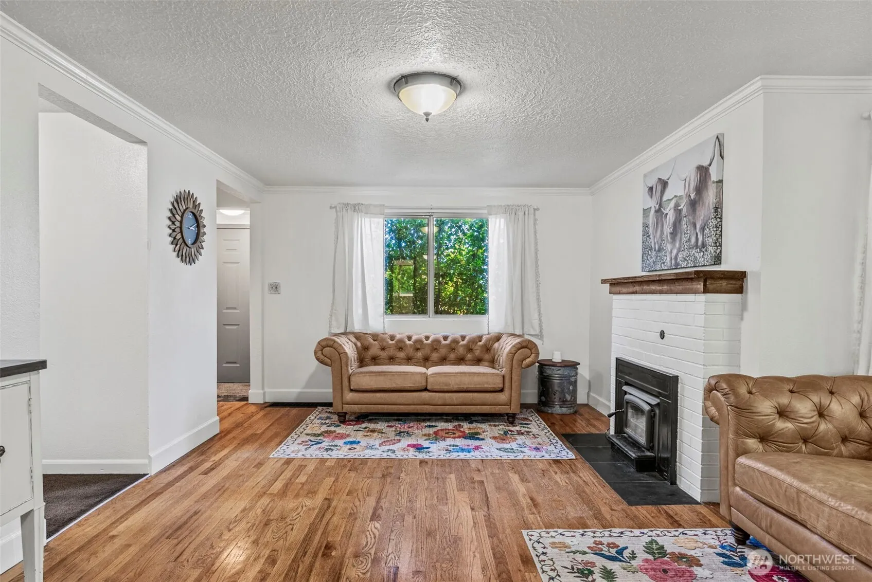 This delightful home has undergone significant renovations, including fresh interior paint, updated kitchen counters, tile work, and new flooring. The addition of new carpet and bedrooms, combined with the original hardwoods throughout, creates a warm and inviting atmosphere. The bathroom has been beautifully remodeled, and the abundance of natural light enhances the sense of comfort. The spacious basement boasts painted and sealed floors, providing plenty of extra space. A large deck is ideal for entertaining, and the detached shop offers a practical workspace.