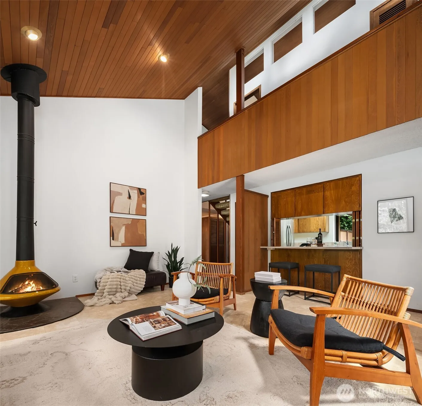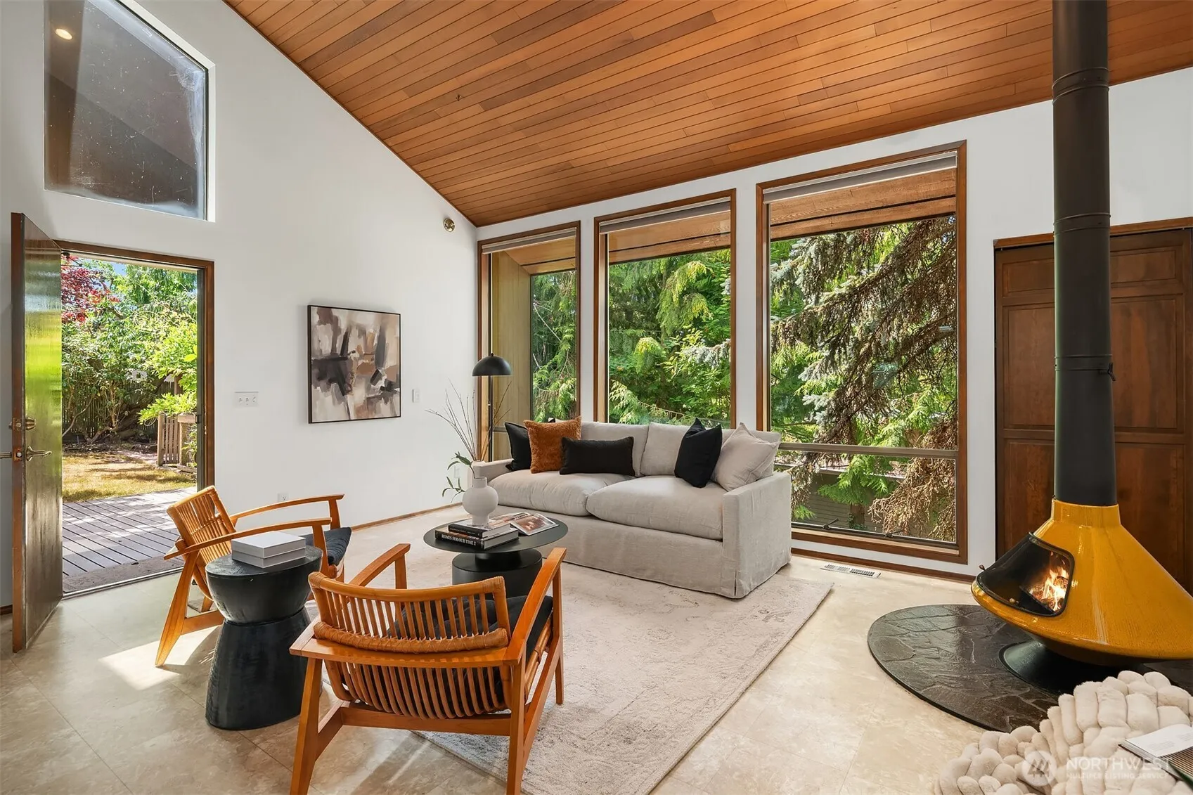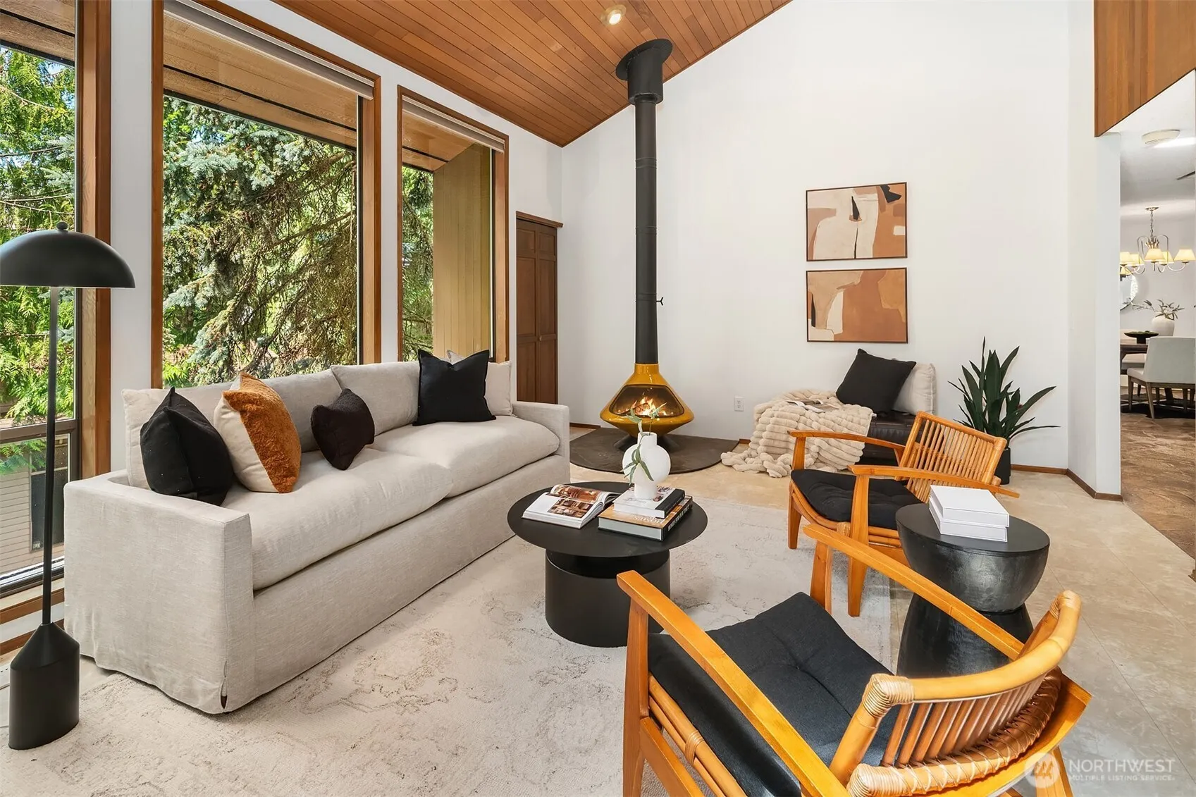 Mid-Century Modern one-owner home, custom-designed by highly regarded NW Architect, Les Tonkin in 1969. High ceilings, intimate spaces, natural wood ceilings, two fireplaces, one gas and one wood-burning, a primary suite on the main floor, a powder room, three bedrooms up with full bath, air-conditioning, and so much more. If you are design-savvy and want to “make it yours”, look no further. Mature plantings, large sun drenched back yard with covered deck and outdoor structure. Two-car garage with lower-level entry, laundry, family room, and 3/4 bath. Exceptional Shoreline school district, parks, outdoor activities, and beaches nearby. Don’t miss this one! Offer review Wednesday 7/30 at 3pm.