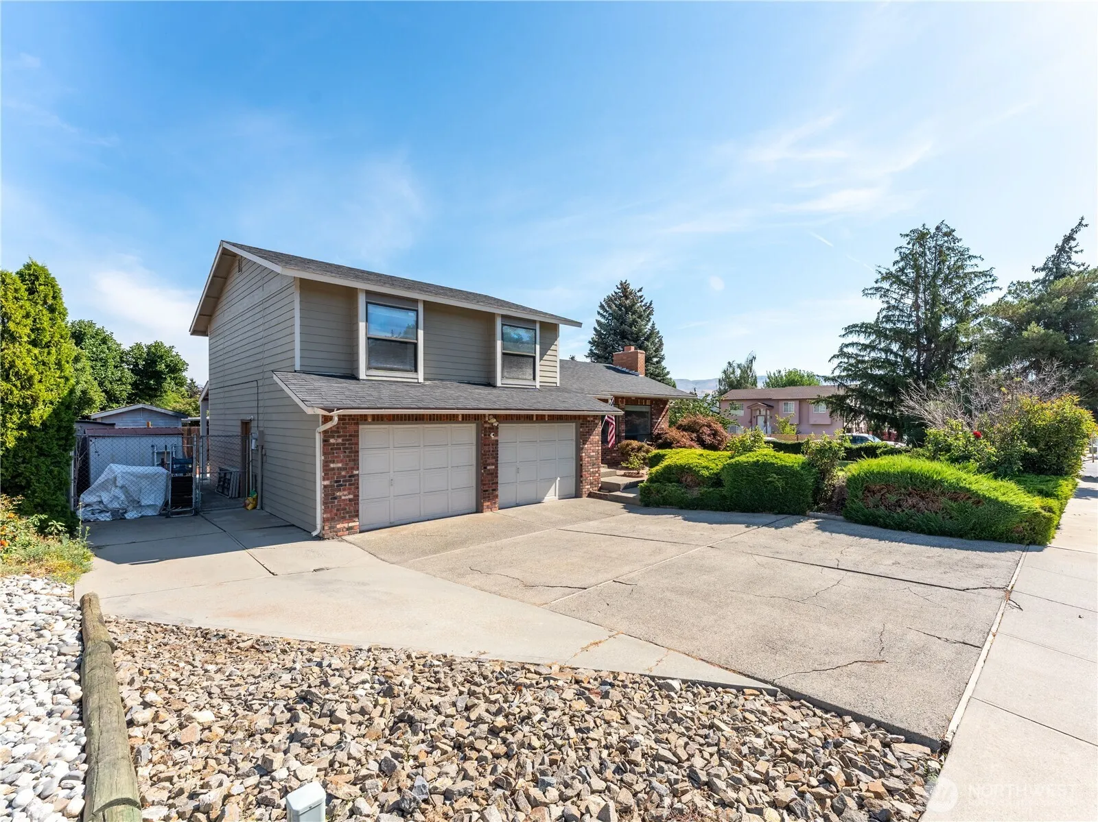 This 4-bedroom, 2.5-bath tri-level home offers impressive features. The entry welcomes you into a bright living room with a fireplace framed by brick. The kitchen has a fresh remodel with painted cabinetry and new hard surface counters. Enjoy meals at the breakfast bar or in the dining area, which opens to a spacious patio. Upstairs, find three bedrooms, including a primary suite. The guest bath features an updated vanity, countertop, and LVP flooring. The lower level contains the fourth bedroom, laundry, and access to the two-car garage. With RV parking, dual driveways and abundant parking this home presents endless possibilities. The convenient location is close to town. Call to schedule your tour today.