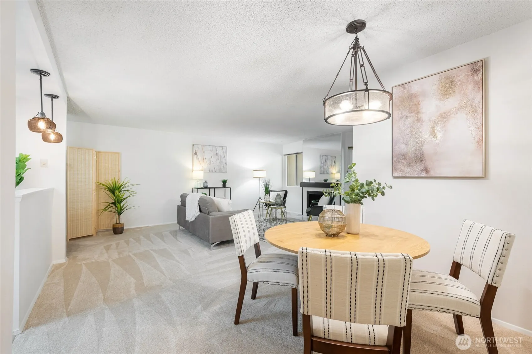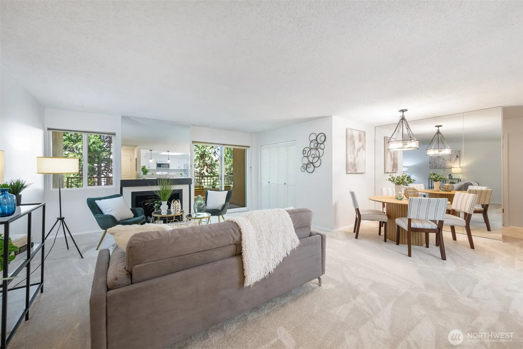 Welcome to the gracious Devington condos in the heart of beautiful Mercer Island. Featuring a spacious 2 bedroom 2 bath condo with open-concept modern living & dining areas. The generous gourmet kitchen showcases newly painted cupboards, new flooring, and new stainless steel refrigerator, stove and microwave. The over-sized primary bedroom features a walk-in closet, double-sink vanity, full bath, and bonus 2nd closet. New plush carpet, laminate flooring and new interior paint. The convenience of one designated parking space in the secured gated garage, and an additional storage unit. Enjoy urban living perfectly situated near restaurants, shopping, metro, trails, Seattle entertainment, Lake Washington, parks, and award-winning schools.