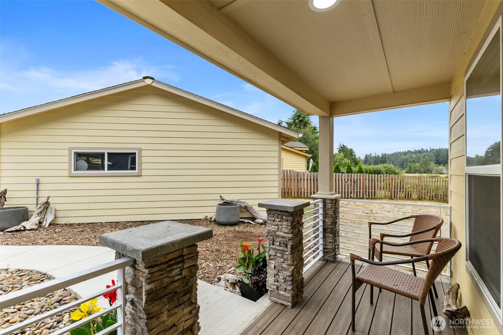 Welcome to this beautifully designed 2-bed home w/ a versatile office/den & an oversized 2-car garage, located on a large lot in the desirable gated community of Sunset Meadows. Enjoy serene, distant views and a private backyard oasis—perfect for peaceful mornings or evening relaxation. This home features a zero-step entry, spacious Trex deck, & a chef’s kitchen complete w/ center island, bar seating, hidden microwave, built-in pantry cabinetry & an induction stove. Primary suite offers a large tiled walk-in shower, 3 closets including a walk-in. Ideally located just minutes from the library, supermarket, post office, bank, and more.