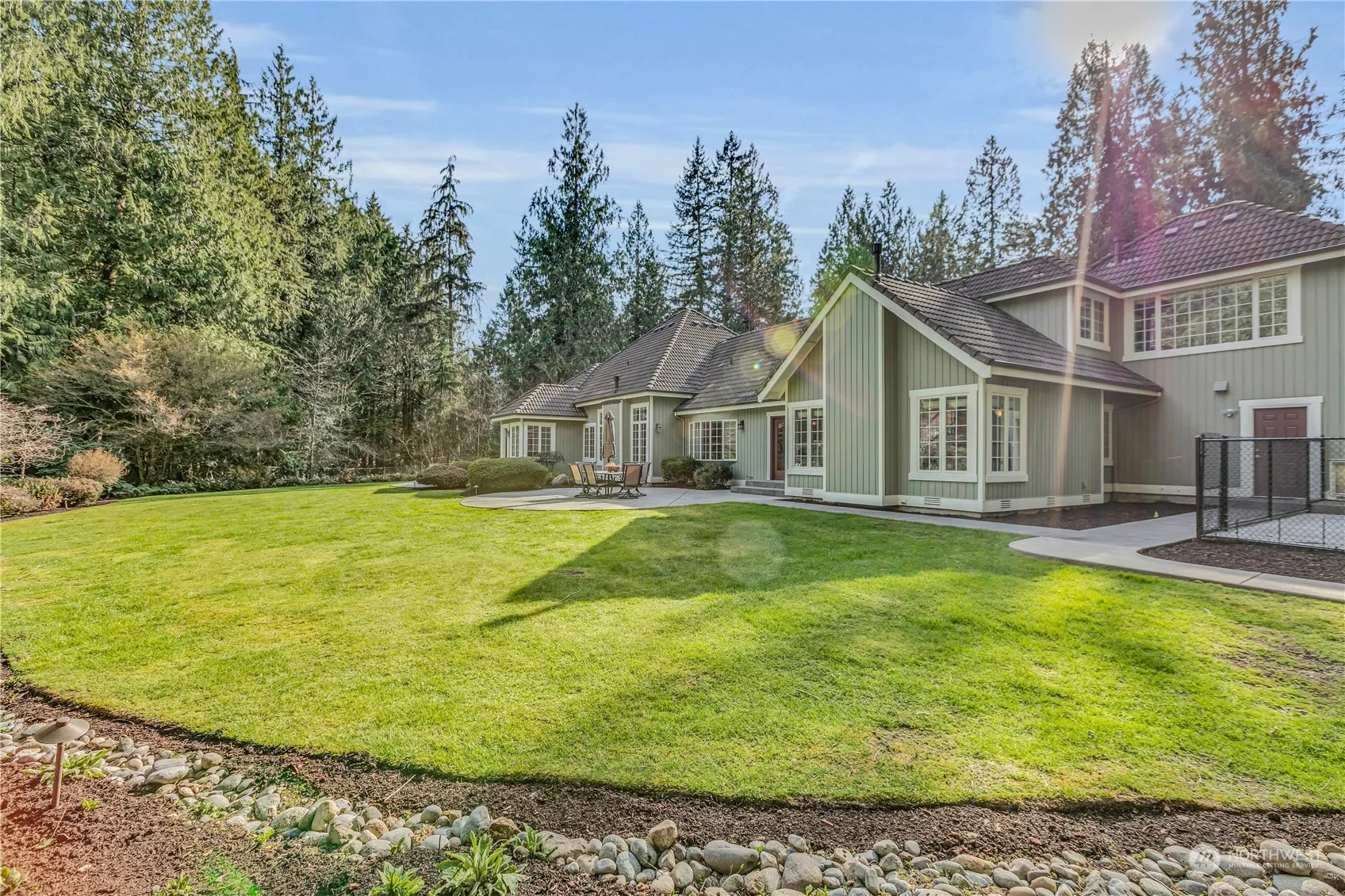 Exceptional Woodinville enclave offers 8+ acres of private woodland trail to Bear Creek & one level living. Elegant foyer opens to soaring ceilings; vaulted & coffered, sky-wells & oversized windows celebrate both light & air. Gated access & fully paved circular driveway enters off county-maintained road. Perfect for auto enthusiasts with a separate 3 car detached custom-built hobbyist garage. Spacious Primary Suite opens to a patio w/ verdant views. Artistic brick bas-relief in family rm fireplace depicts salmon jumping as a nod to your Bear Creek waterfront. Chef’s kitchen features a large cooking island & open to casual eating area with built-ins & a big walk-in pantry. Automatic natural gas powered backup generator/newer systems.