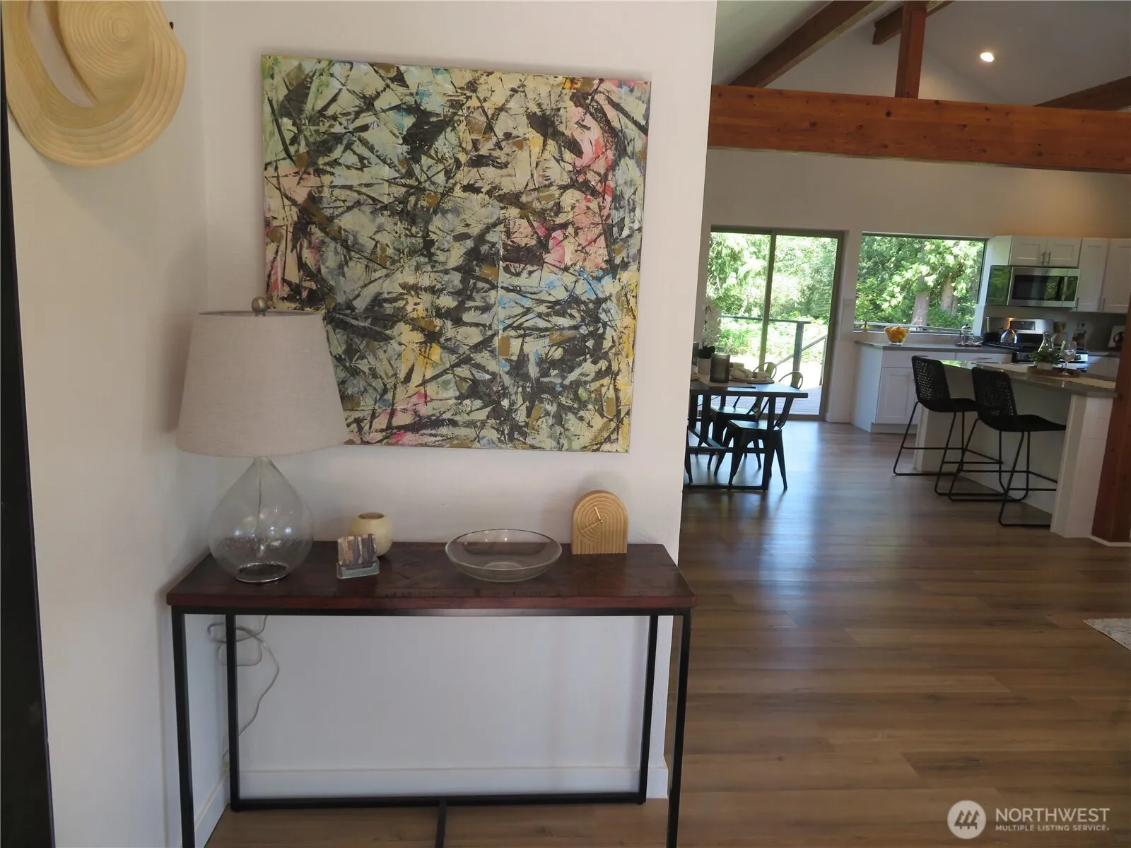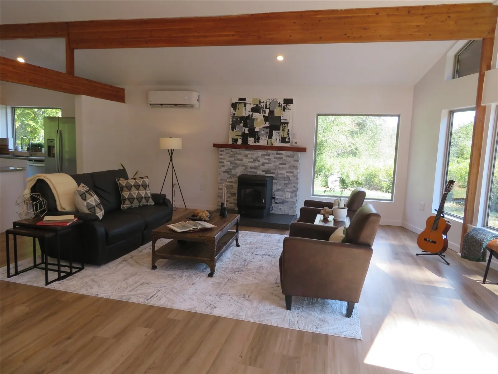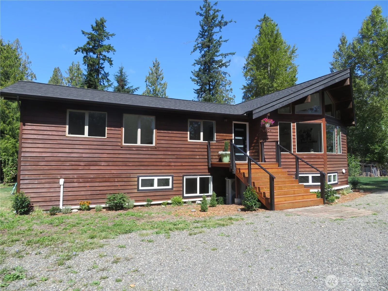 Exuberant spohisticated architecture meets the rustic natural beauty of the forest. Apart from main road down a secluded gravel entry into a circular driveway w/plenty of parking. 5 acres surrounded by wooded charm & wetlands that will not be developed. Upper level finished 1790 SF w/3 BR, 2 BA total main area radiant flooring heated open floorplan vaulted ceilings w/ wood beams encompasses LR, kitchen & dining area. Spacious back deck. Lower level potential for independent living space: 1,746 SF is sheetrocked w/ minisplits, electrical, & potential for 2 BR, .75 BA, large LR, kitchen & dining area. Lower level has two entrances and interior stairs to upper. Large level yard – could be used for extensive gardens. Chicken coop on property.