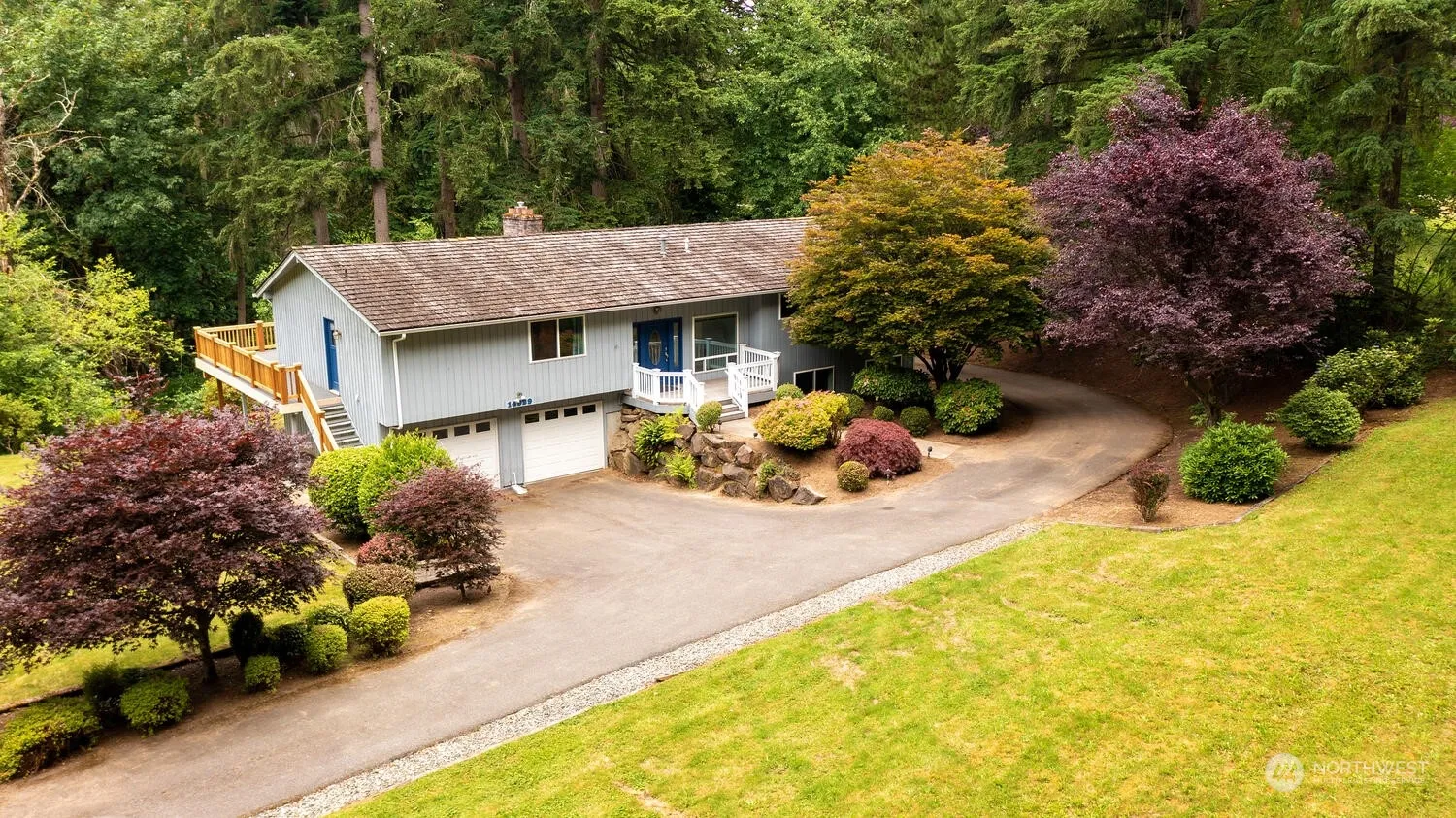 Amazingly close to downtown Woodinville but a world away, this nearly 3 acre parcel is an incredible spot. Up private tree lined drive, you feel the welcome of this home as you approach. Adjacent to 34 acres of Gold Creek County Park with walking and equestrian trails, the sounds of the city fade away. The sturdy construction of this lovingly cared for home is your blank canvas to create your Hollywood Hill/ Wine Country interurban hideaway. Three bedrooms on the main floor and many additional rooms to use on the lower level, this home could accommodate two home offices easily. Newly updated deck off the main floor extends your interior living space to enjoy more of the privacy outside.