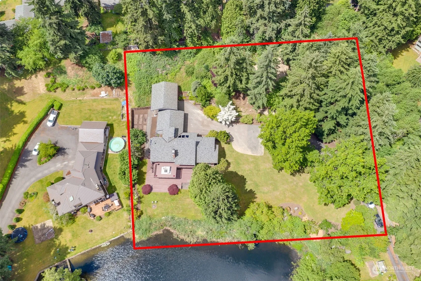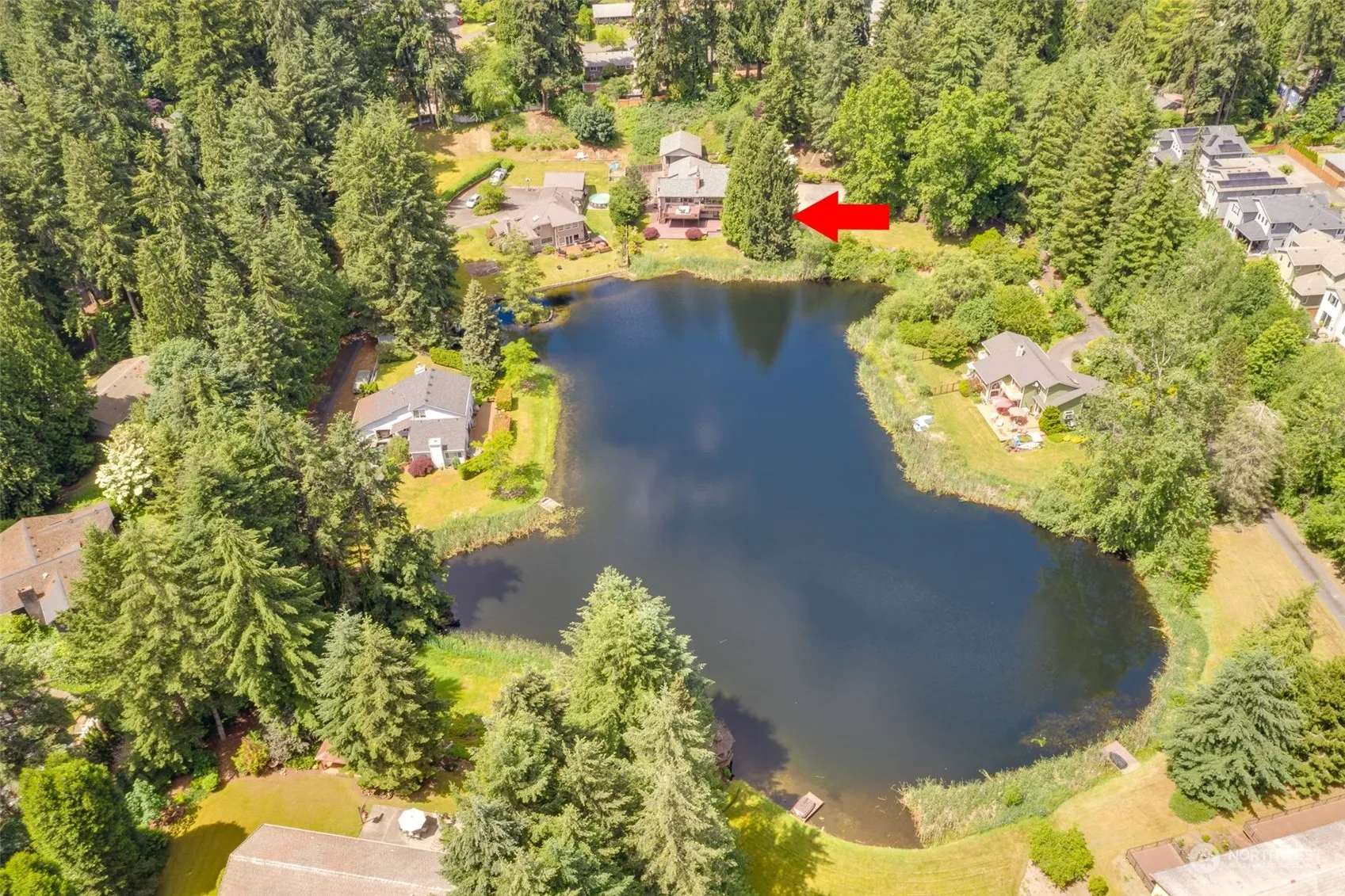 1.7 acres on a shared Private Lake just ~1 mile to Woodinv. Town Center. Contemporary 4 bedrm home offers Lake view from every room! Walls of windows in the living/dining rm & kitchen. Huge Chef’s kitchen features a generous island, SS appliances, abundant cabinets & walk in pantry. Enjoy multiple Lake side decks. Primary bedrm w. 3/4 bath & walk-in closet. Lg. Family & Bonus rm, Hardw. floors. High eff. Furnace & A/C. Wine cellar w/chiller, two 200A service panels. 4 y. new Roof, new Septic system. Large 2 car Garage w.2 EV chargers & workbench. 495 sq. ft. Shop, Shed & RV/boat Carport, Veggie beds, fruit trees for all your hobbies! Sought-after Northshore Schools. Just minutes to 522/I405. Welcome to a life of Beauty, Comfort & Privacy!