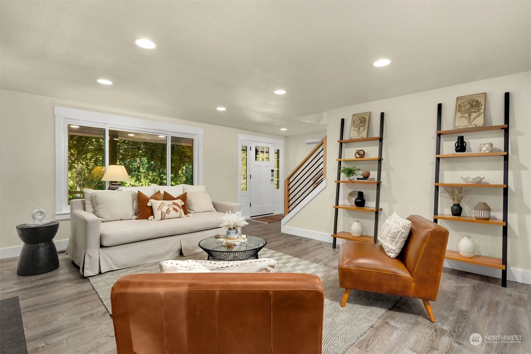 Experience the Woodinville lifestyle in this stunning, impeccably remodeled home that blends style, luxury, & comfort converge. This property boasts a tankless water heater, all-new triple-pane windows, updated railings, sliders, trim, LVP flooring, tiled fireplaces, all-new bathrooms, smart recessed lighting, barn doors, & a farmhouse shiplap design inside & out. The gorgeous new kitchen boasts live edge wood wine racks & shelving, a huge island, quartz counters, dual pantries, & new appliances. Nestled in a friendly cul-de-sac, the backyard is a private sanctuary perfect for entertaining, with/ spacious patios, lush landscaping, & serene seating areas, perfect for relaxation and socializing.