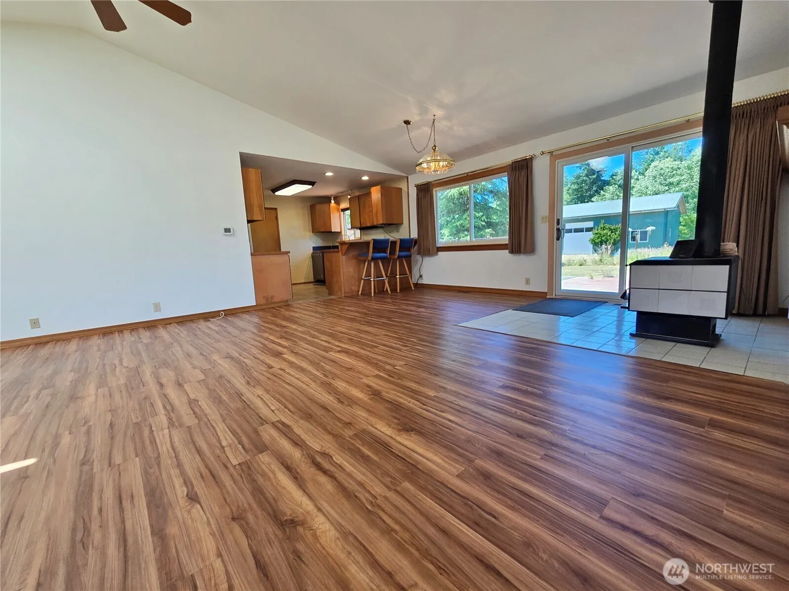 Vaulted ceilings and skylights offer a bright and cheery feeling from the moment you walk into this 3 bedroom, 1.75 bath home in a great neighborhood! Upgrades include a newer roof, vinyl windows, Anderson Window slider, heat pump, and a free standing stove. The home has laminate flooring through most of the home with 1 bedroom needing updated flooring. A beautiful multi level back deck lets you enjoy the peaceful neighborhood and west facing back yard. Home is ready for it’s new owner!