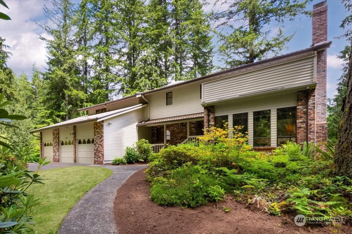 Rare opportunity to embrace the Lake Tuck Lifestyle. This gated community boasts privacy, a shared waterfront park, & room to breathe. Set on 1.87 acres, this 4100 sq ft home is an entertainers dream, both indoors & out. The main floor boasts spacious living spaces with vaulted ceilings, 2 fireplaces, formal living room, kitchen with large eating space & separate dining & great rooms. The upper floor includes a massive primary suite with separate sitting room & private deck; 2 bdrms w/ walk-in closets & private decks; a full bath w/ separate shower. Lower floor includes a 3/4 bath, wet bar, & spacious rec room with fireplace & patio. Oversized 3 car garage, 2 water heaters, Generac generator, separate mini-split for lower floor & MUCH MORE