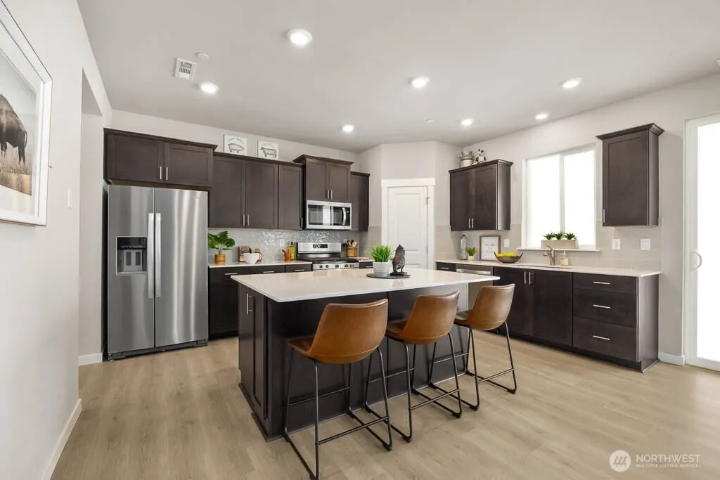 Now selling the prestigious Preston floor plan at Wolf Point in Edgewood by D.R. Horton! Plan offers a main floor bedroom & shower perfect for your guests to visit without stairs. Enjoy a spacious bonus room for media or play. Open-concept great room, dining, & kitchen spaces are completed with premium finishes including gas cooktop & gourmet hood vent! Landscaping, fencing, A/C, EV car charging, & smart home features included! Minutes from shopping & nearby park. Move in ready and enjoy privacy, being at the edge of the community. Surrounded by green space and valley views. Puyallup Schools! Buyers must register their broker on first visit, including open houses. Turnkey, Refrigerator, washer, dryer, blinds and garage door opener included.