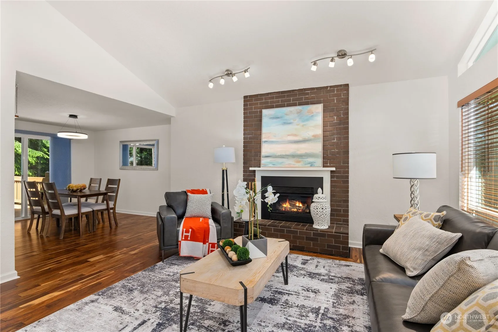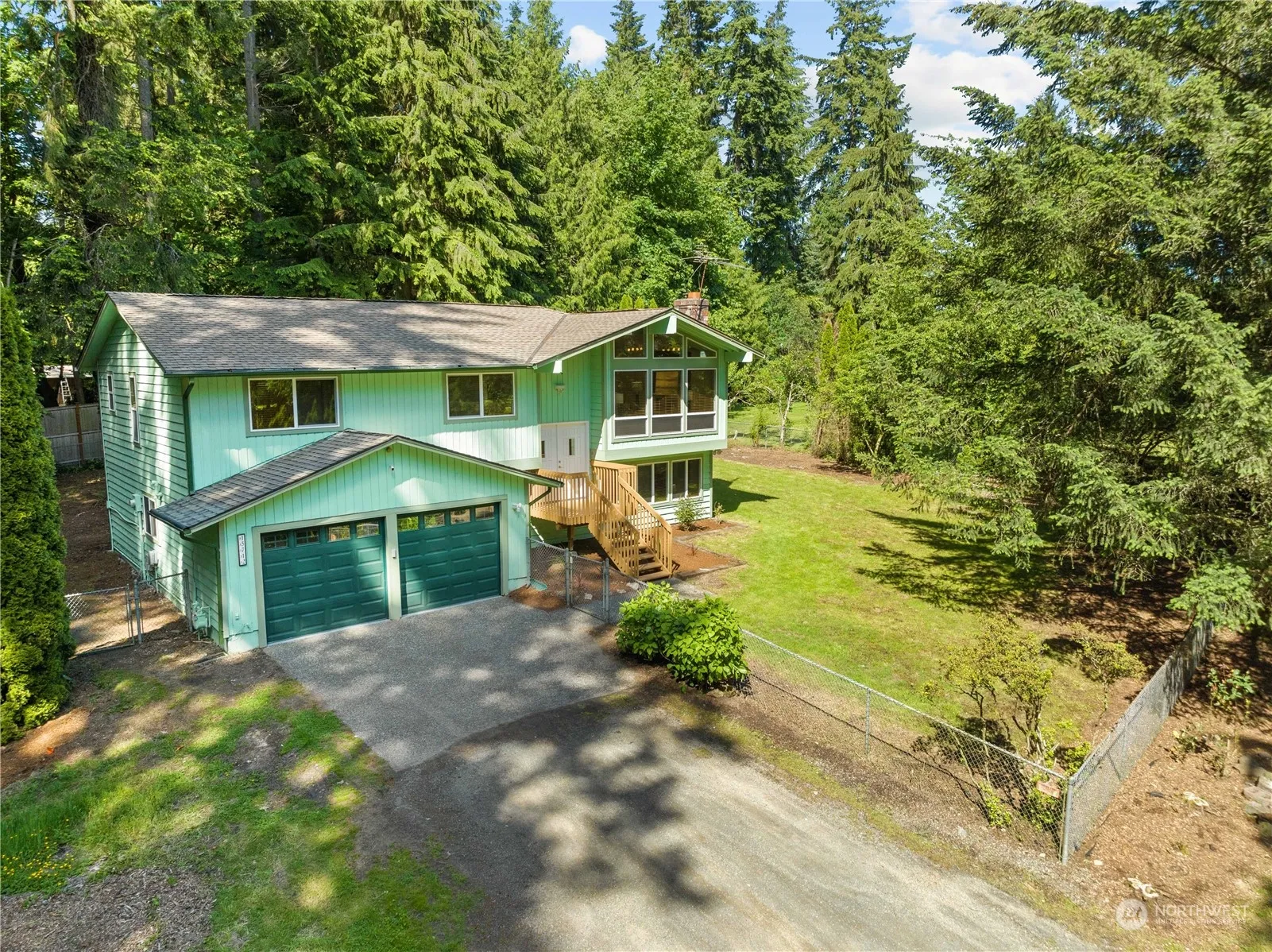 Nicely updated home on private acre+ lot. Recent updates include Acacia flooring, raised panel doors, double pane windows, exterior & interior paint, light fixtures & doors. Updated kitchen with shaker cabinets, quartz counter tops, stainless appliances and gas range. Updated hall bathroom with new vanity, mirror ceramic tile floor & tile tub enclosure. Primary bathroom updated in 2022. Both bathrooms have heated tile floors. 500+ SF deck perfect for parties, summer dinners or BBQ’s year round! Additional features include vaulted ceiling, gas fireplace, new blinds, sliders from primary bedroom to deck, wood burning insert in family room, big fenced yard with garden space, hot tub, stainless washer & dryer, 2 storage sheds & superb location.