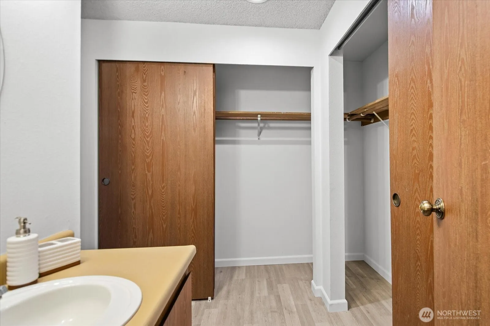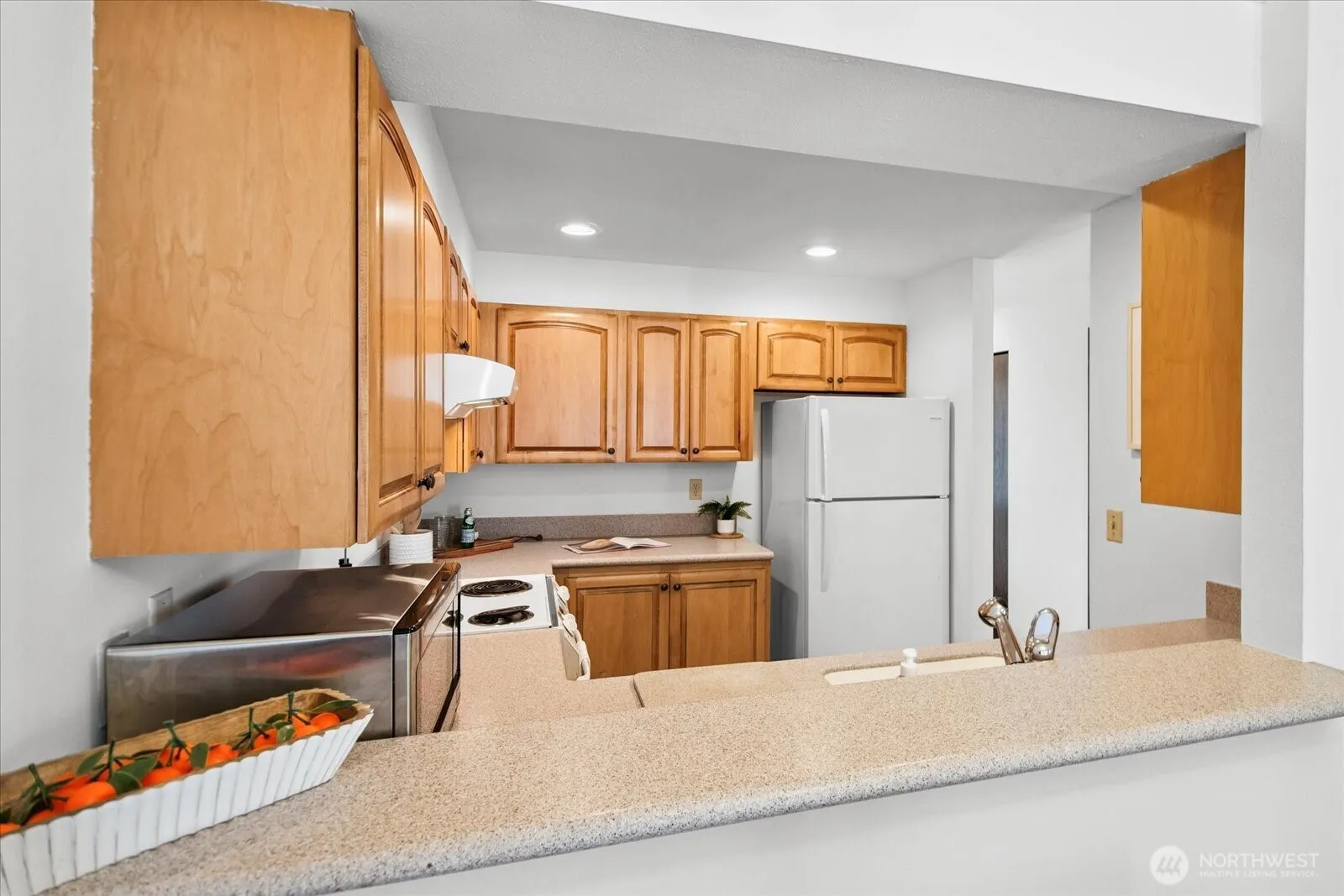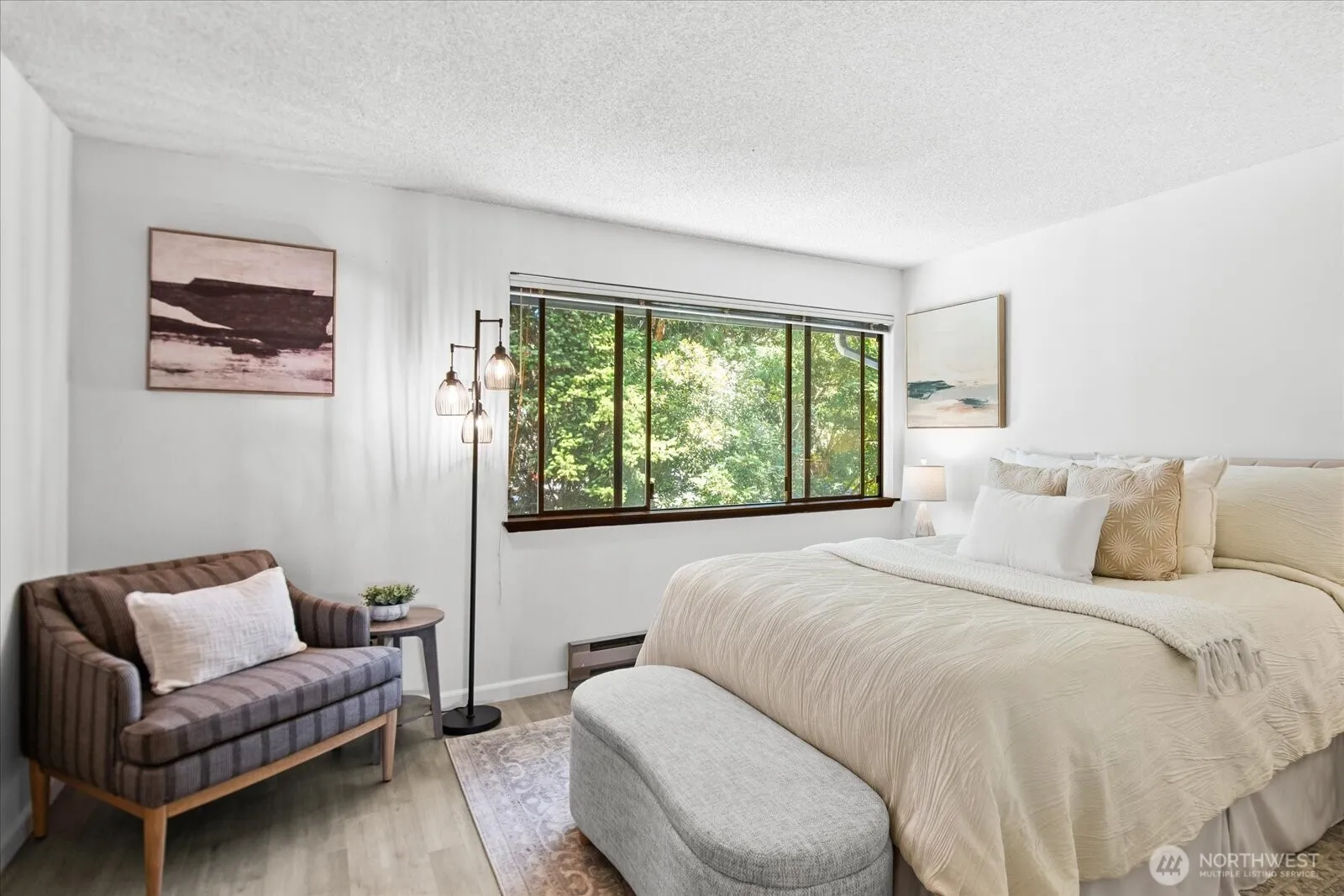Welcome to this peaceful townhome! Located on the top two floors of a quiet three-story building, this spacious home features bright laminate floors and an open living/dining area that flows into a freshly updated kitchen with newer cabinets and sleek Corian countertops. Main level also boasts a powder and cozy wood burning fireplace. Relax and sip a beverage of your choice on your private deck surrounded by trees. Upstairs, enjoy a full bath with dual vanities and a dressing area. 2 miles from the light rail as well as the beach, this home is located near a mix of everyday conveniences and outdoor escapes that make life a little easier and a lot more enjoyable.