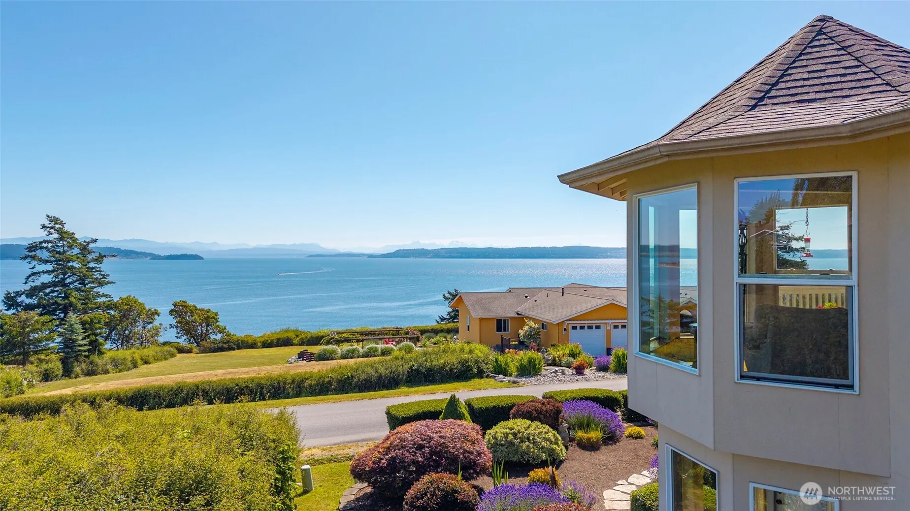 Sweeping views of Saratoga Passage, Oak Harbor Bay, the Cascades & Mt. Baker, & located on a quiet cul-de-sac define this 3-bed Scenic Heights home. Vaulted great room, endless windows, bay window seating, hardwood floors & custom gas fireplace. Kitchen is perfect for entertaining w/ quality appliances. Garden window overlooks the fenced backyard. Upper level has a view-filled office/den, guest 1/2 bath & stunning primary suite w/ dual walk-ins, bay window, soaking tub & luxurious shower. Downstairs: 2 bedrooms (1w/ private patio), full bath, laundry, storage, +oversized 2 car garage. Beautiful landscaping completes this special retreat designed to feel like every day you are on vacation. Seller is a “Motivated Senior wanting to downsize”.