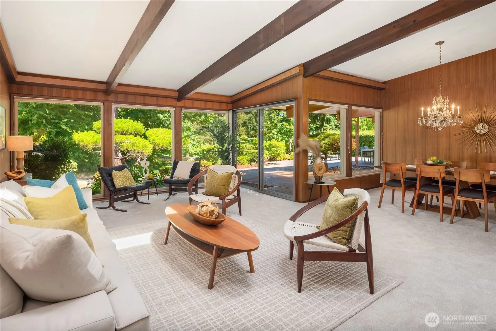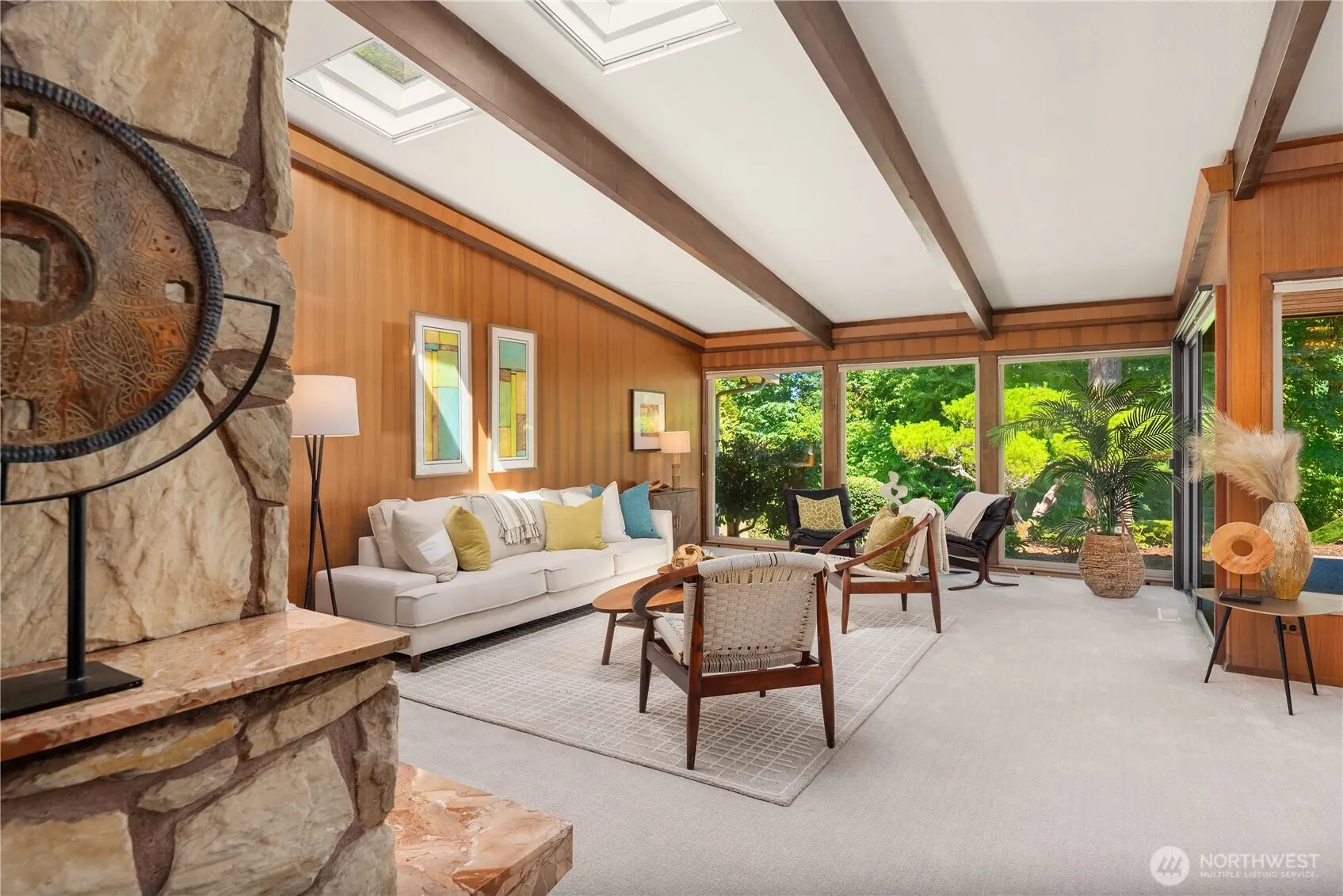 Preserved in time and framed by the 4th fairway at Rainier Golf & Country Club, this mid-century residence captures the essence of architectural integrity and natural connection. A grand double-door entry welcomes you into a sunlit interior defined by vaulted ceilings and expansive living spaces. The large kitchen and flowing floor plan offer an ideal canvas for thoughtful updates, ready to be transformed into a home that reflects your vision and style. With 4 bedrooms including primary suite, 3 bath + powder room, 2 fireplaces, 2-car garage & the ultimate entertaining patio, the home offers flexibility and timeless design. First time on the market in 58 years, this is a rare opportunity to reimagine a classic in an extraordinary setting!