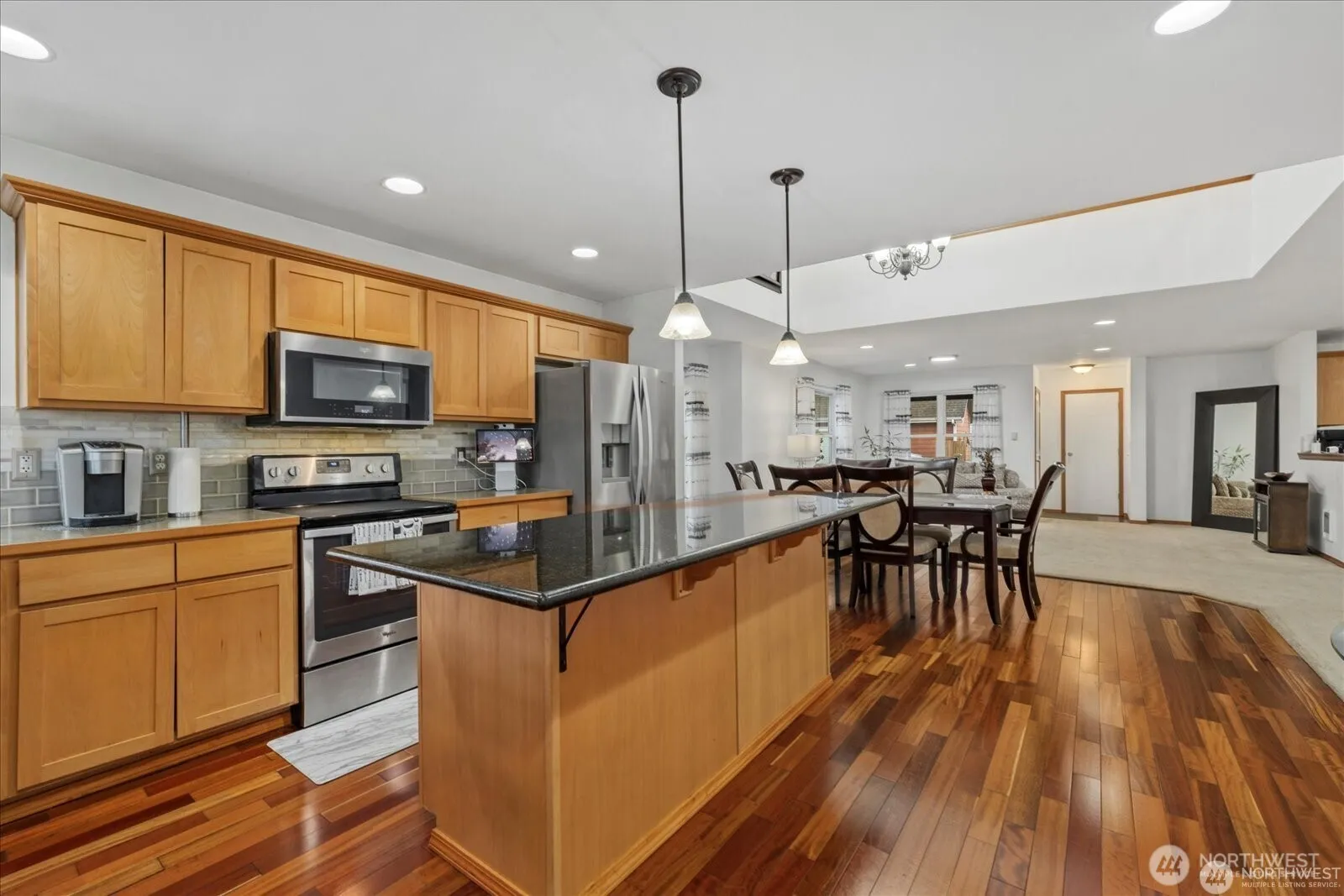Discover this charming, well-maintained home with a bright open-concept design perfect for gatherings. The spacious kitchen, featuring a large granite island, flows seamlessly into the dining and living areas under high ceilings that fill the space with natural light. The main floor offers a master suite with a 3/4 bath and walk-in closet, plus a second bedroom with its own walk-in closet. Upstairs, enjoy two additional bedrooms, a full bath, and a versatile loft for entertainment. Ideally located near parks, sports courts, Auburn Mall, restaurants, and with easy access to Highway 167 and the Interurban Trail. Don’t miss this gem!