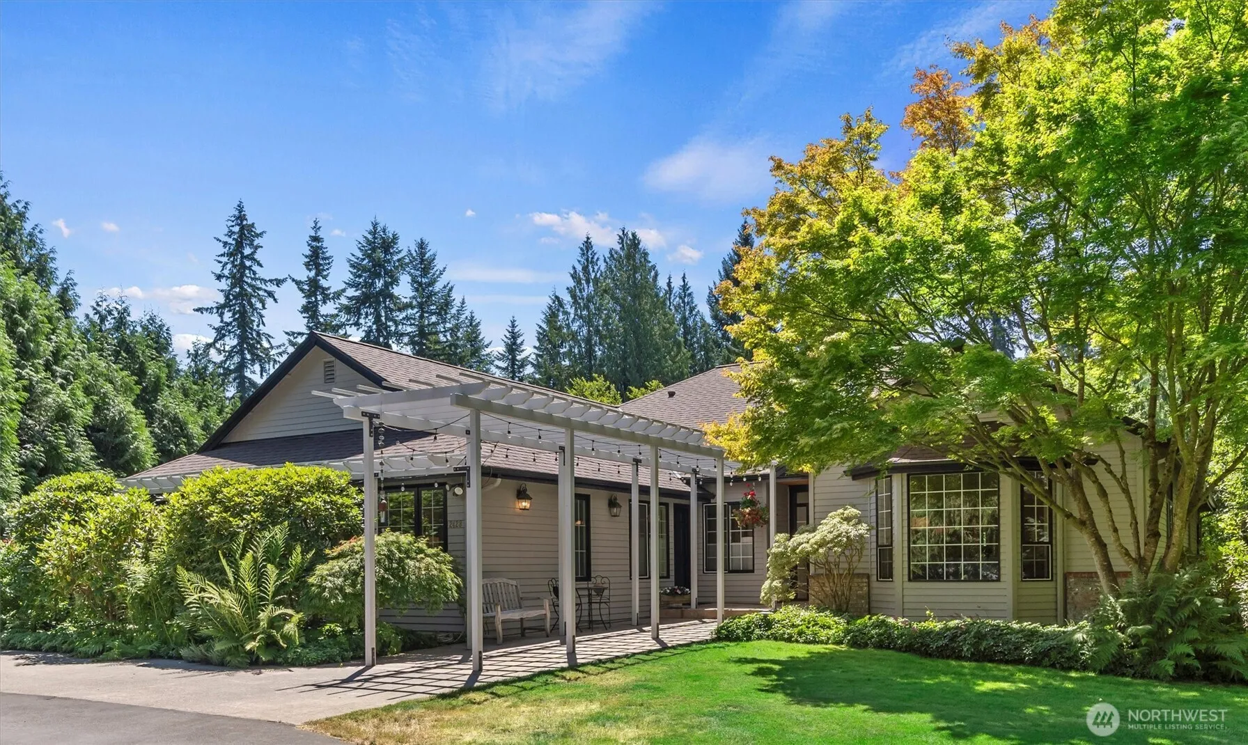 Stunning sought-after rambler + 3-car garage nestled in nature on 2.35 level, private, usable acres backing to NGPA! The inviting porch with glass ceiling welcomes you to an impressive 5-bedroom + office home with 3 full bathrooms and separate wings – ideal for multi-gen living. Updates include fresh interior/exterior paint, newer roof (2023), furnace, A/C, range/oven, lighting and hardware. Enjoy the beautiful property year-round from the 420sf covered, heated deck with ceiling fan, skylights and speakers. Property boasts a fenced garden, shed, scattered orchards, open space, Invisible Fence, tree house, sprinkler system, Gentran generator, and night lighting. Ideal location 8 minutes to I-5 and near Pilchuck Tree Farm & Centennial Trail.