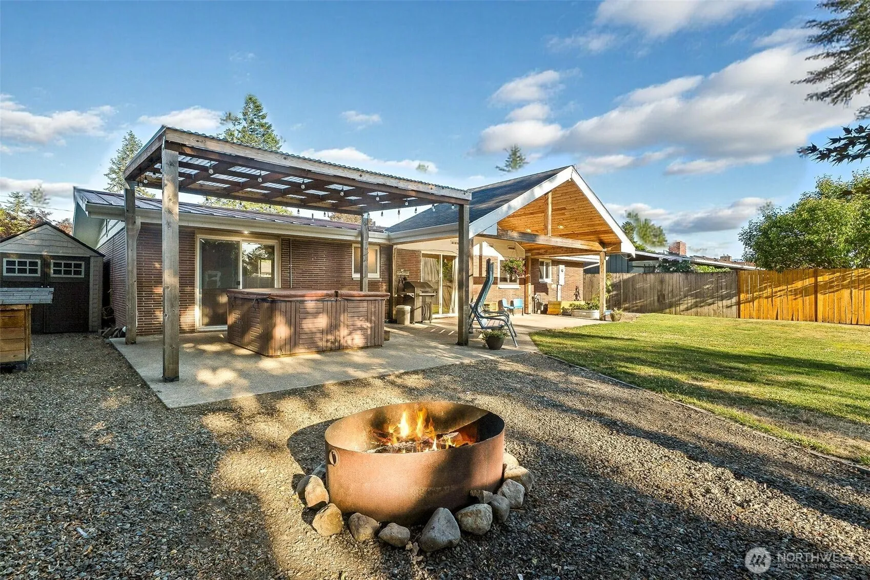 Back in action! Previous buyer bailed w/out cause, so here is your chance! Classic rambler in the heart of Enumclaw – just a quick stroll to Montgomery Park & all that downtown has to offer. 3Bed/1.5Baths w/ a comfortable layout featuring two open living spaces. Remodeled bathrooms w/ updated vanities & an easy-clean shower/bath. Kitchen offers plenty of storage, a gas cooktop & dedicated pantry. Primary bedroom w/ private access to the covered hot tub area. Generous lot is fully fenced w/ alley access, RV parking, and a 12’x22′ storage shop & garden shed. Enjoy the outdoors year-round under the beautifully finished vaulted covered patio, roast s’mores in the charming fire pit area & sneak a peek of stunning Mt.Rainier. Pre-Inspected.