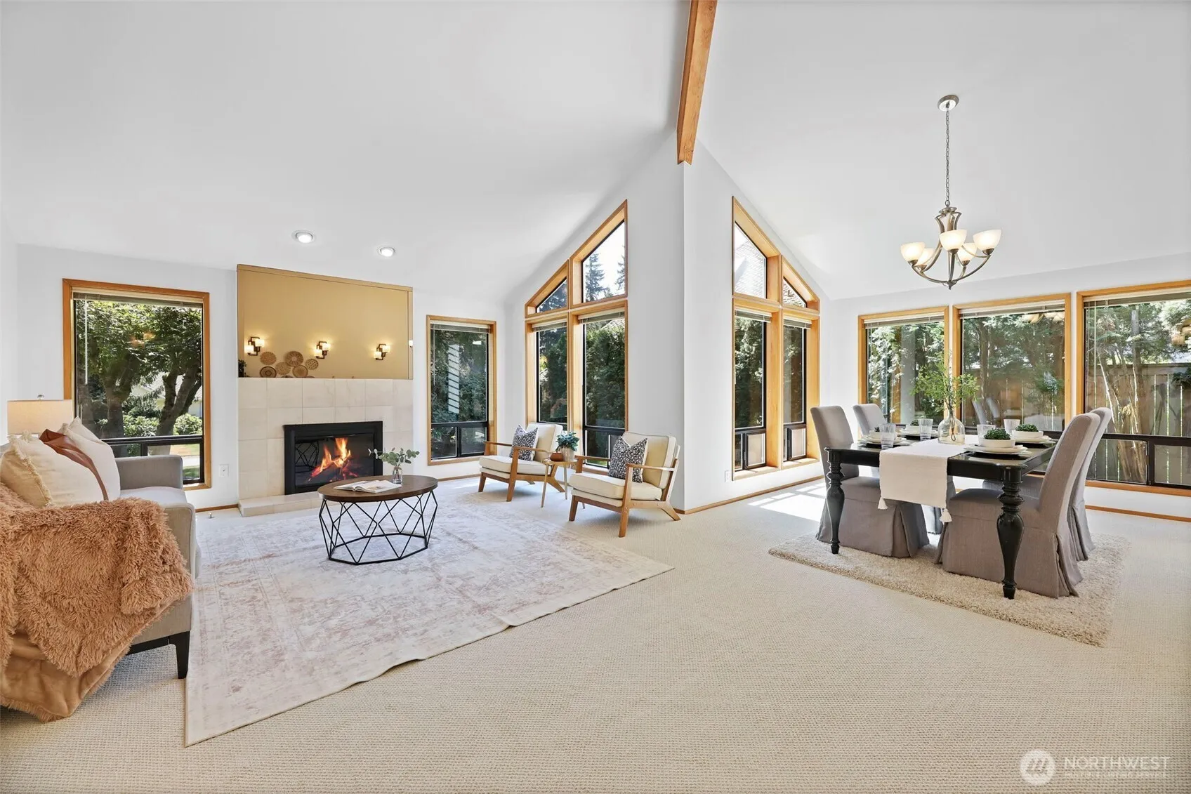 This striking contemporary home offers exceptional livability in MILL CREEK’s desirable DOUGLAS FIR neighborhood. Thoughtfully designed w/SOARING CEILINGS, rich wood accents, & EXPANSIVE WINDOWS bringing in natural light creating a warm & inviting atmosphere year-round. Enjoy open-concept living, a private owner’s retreat, 3 addl bedrooms, 2 full baths, & flexible spaces that adapt to your needs – ideal for relaxing, working or entertaining. The home’s clean architectural lines & indoor-outdoor flow reflect the best of the PNW style. Step outside & savor the tree-lined decks, a cozy fire pit & serene seating areas. Award-winning schools, direct access to trails, parks & local amenities. Don’t forget the abundance of storage, parking & AC!