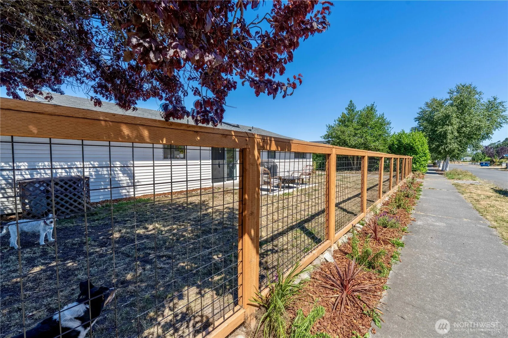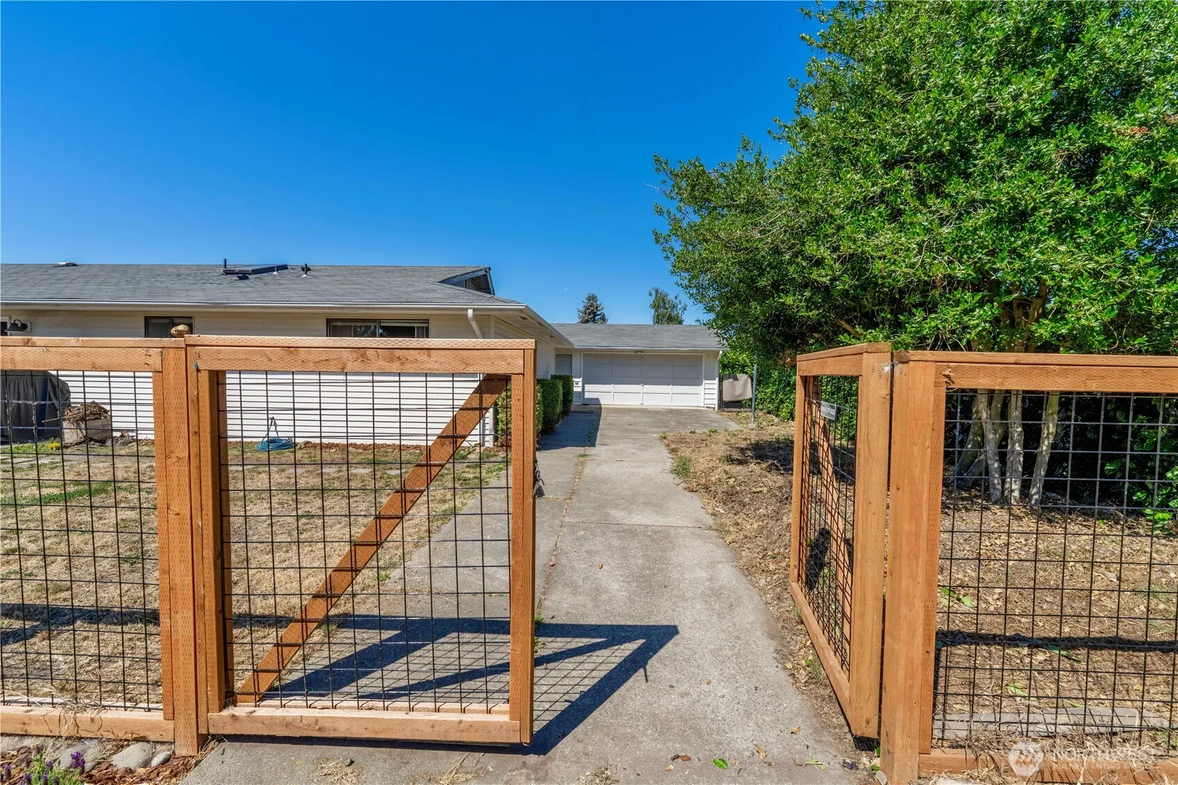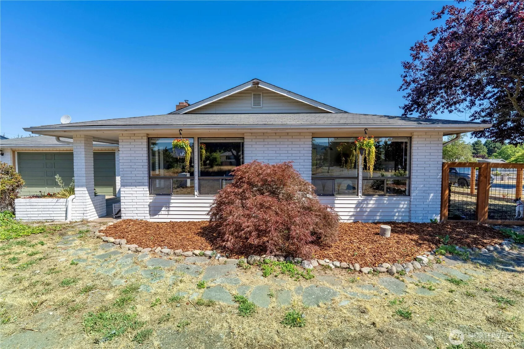 Located near Carrie Blake Park, this Sequim home offers something for everyone. Enjoy one-level living with spacious rooms and abundant natural light in this south-facing home. Recent updates include an improved kitchen with generous storage, cabinetry, and counter space. Bathrooms are tastefully updated & maintained —one with a ZERO-step shower. Flooring is solid hardwood or newer vinyl—no carpet. All appliances are included. The home has central heat/air for daily comfort & a propane fireplace for cozy nights. Need shop space? Two 2-car garages provide over 1,300 sqft of garage/workspace. Each garage has its own driveway: one off Willow, one off Dunlap. The nearly quarter-acre lot includes a newly fenced side yard. No HOA!