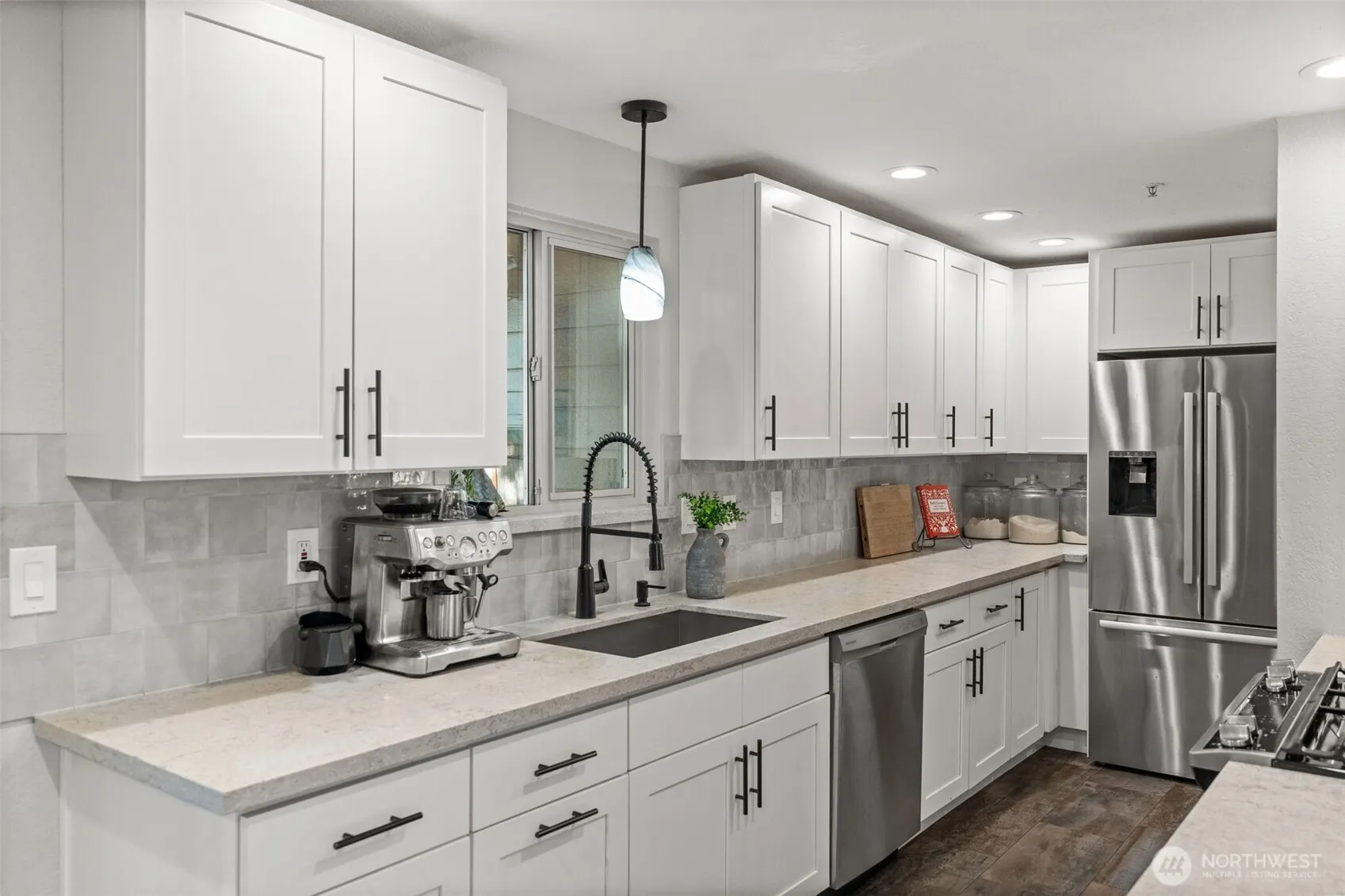 Charming and updated, this Fox Island home features generous open-concept living, hardwood floors and a gas fireplace. The renovated kitchen includes quartz countertops, stainless steel appliances, a gas range, and opens to an inviting gathering space. Upstairs, a private second living area features a large primary bedroom with a walk-in closet and newly remodeled ensuite, plus a flexible bonus room. Mini-split heating/cooling allows for year-round comfort throughout the home. A newly built privacy fence leads to manicured landscaping in the front yard and a fully fenced, low-maintenance backyard water and electric already in place. 2-car garage with deep bay for boat/workshop, carport, newer electric panel, and tankless water heater.
