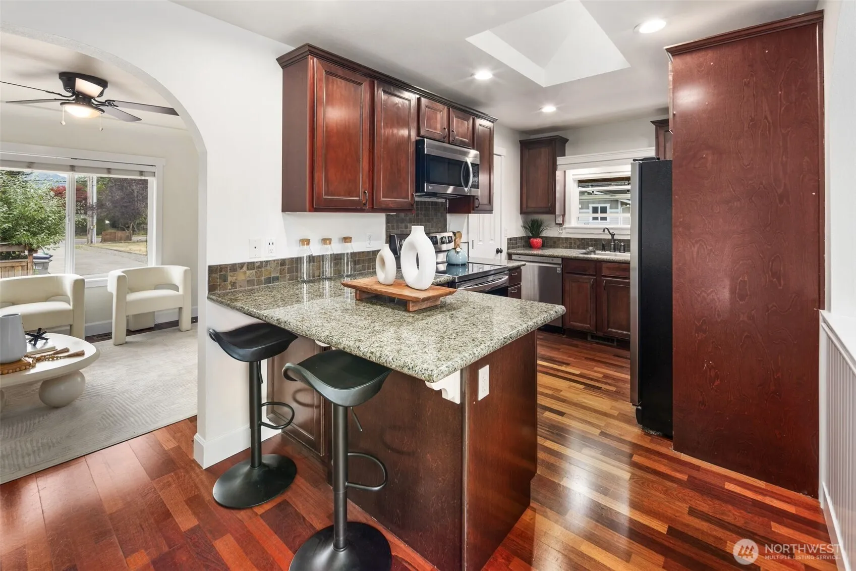 Located just blocks from historic downtown Enumclaw, this move-in ready home offers space, flexibility, and convenience. With 4 bedrooms and 2 full baths across 2,000 sq. ft, there’s room to grow, work, and relax. Enjoy brand new interior paint throughout—including doors and trim—plus fresh carpet upstairs. The main level features rich Brazilian hardwoods and an updated kitchen with stainless appliances and solid surface counters. The fully finished basement adds versatility with 2 bedrooms, a bonus room, office, and full bath—ideal for multigenerational living, guests, or working from home. Clean, low-maintenance, and perfectly located for walkable small-town living!