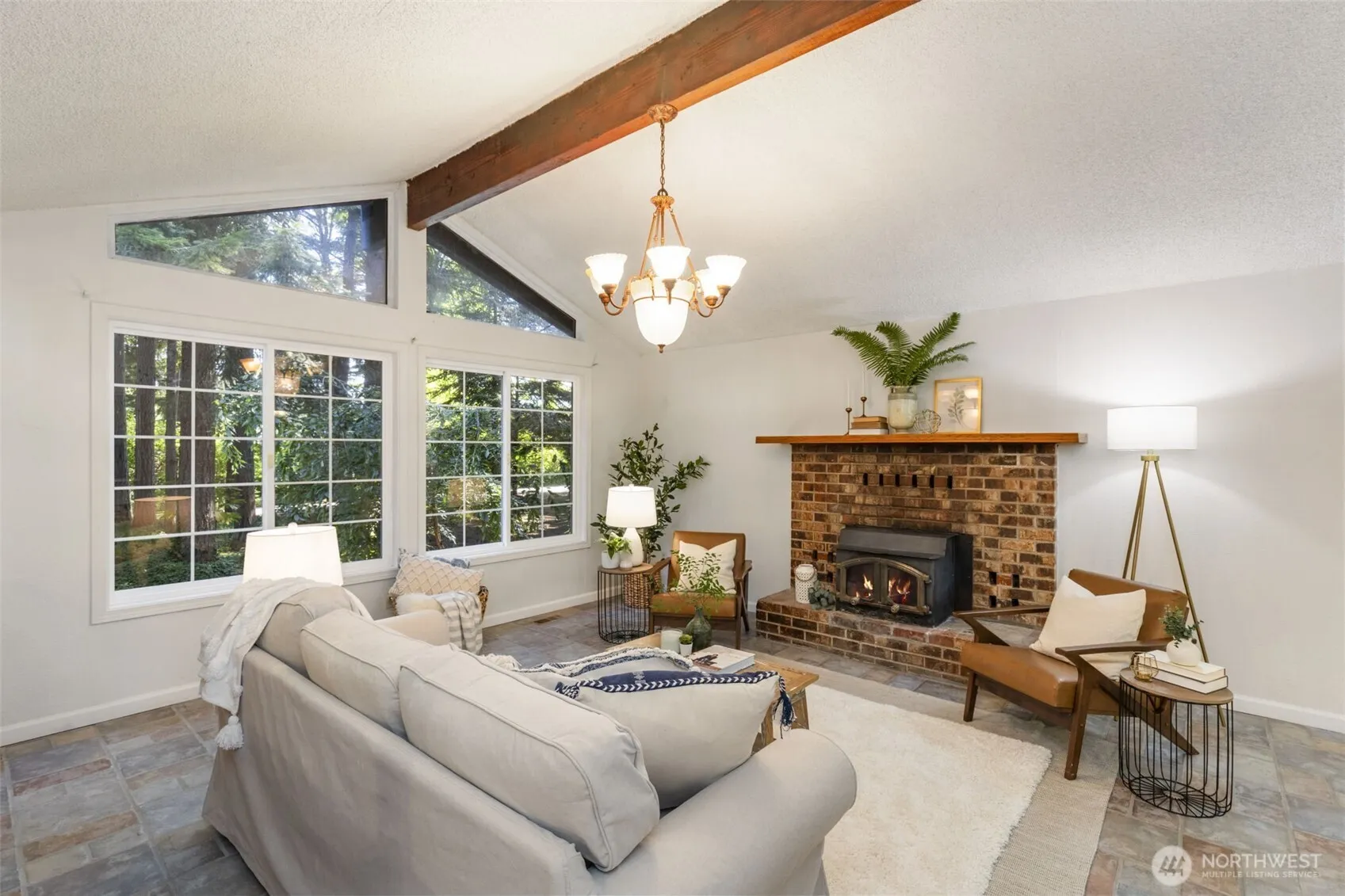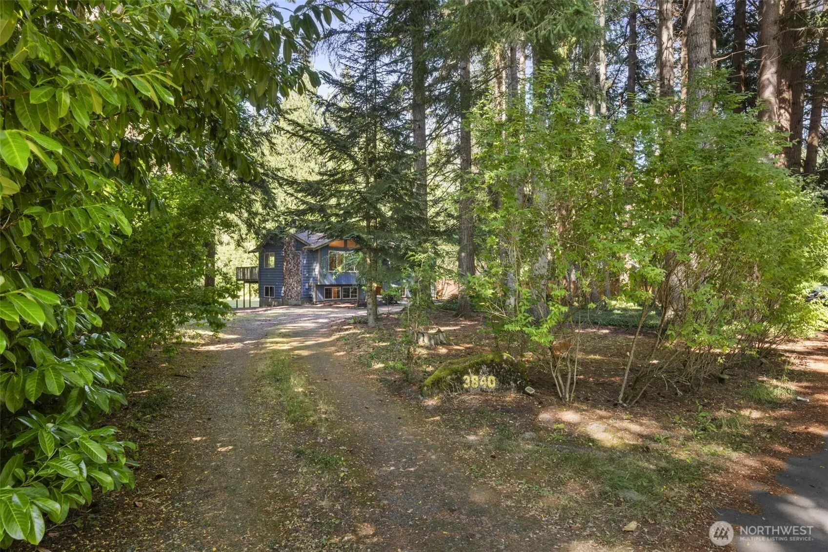 Discover your own private retreat just minutes from town in this serene Poulsbo property nestled on 2 stunning wooded acres. Towering firs and cedars, lush ferns, and meandering trails surround the home, while the sunny backyard meadow offers fruit trees and space to garden, play or relax. Inside, the split-level layout features a vaulted living room with large windows, a cozy fireplace, and views of the trees beyond. The spacious lower-level family room has its own fireplace and walkout access to the backyard. The primary bedroom overlooks the peaceful woods and includes an en suite bath. Two more bedrooms plus additional bonus rooms provide flexible space for work, hobbies, or guests. Tranquility meets convenience here—welcome home!