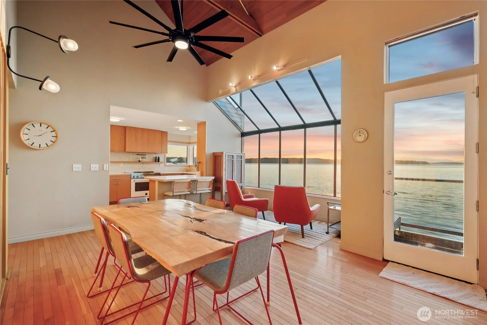 WATERFRONT DREAM in the heart of coveted Three Tree Point! This rare low-bank retreat boasts 60 feet of private Puget Sound shoreline and sweeping, unobstructed views of the water and Olympic Mountains from nearly every room. Nestled among lush greenery, this Pacific Northwest paradise offers Three levels of light-filled living and multiple decks each designed to connect seamlessly with the surrounding natural beauty. Whether you’re kayaking at sunrise, watching the amazing Orcas and Eagles or enjoying sunset on the rooftop deck under a painted sky, every moment here is magical. Additional features include three off-street parking spaces, attached shop, Softub hot tub and a sense of peace that feels worlds away—yet just minutes to the city.