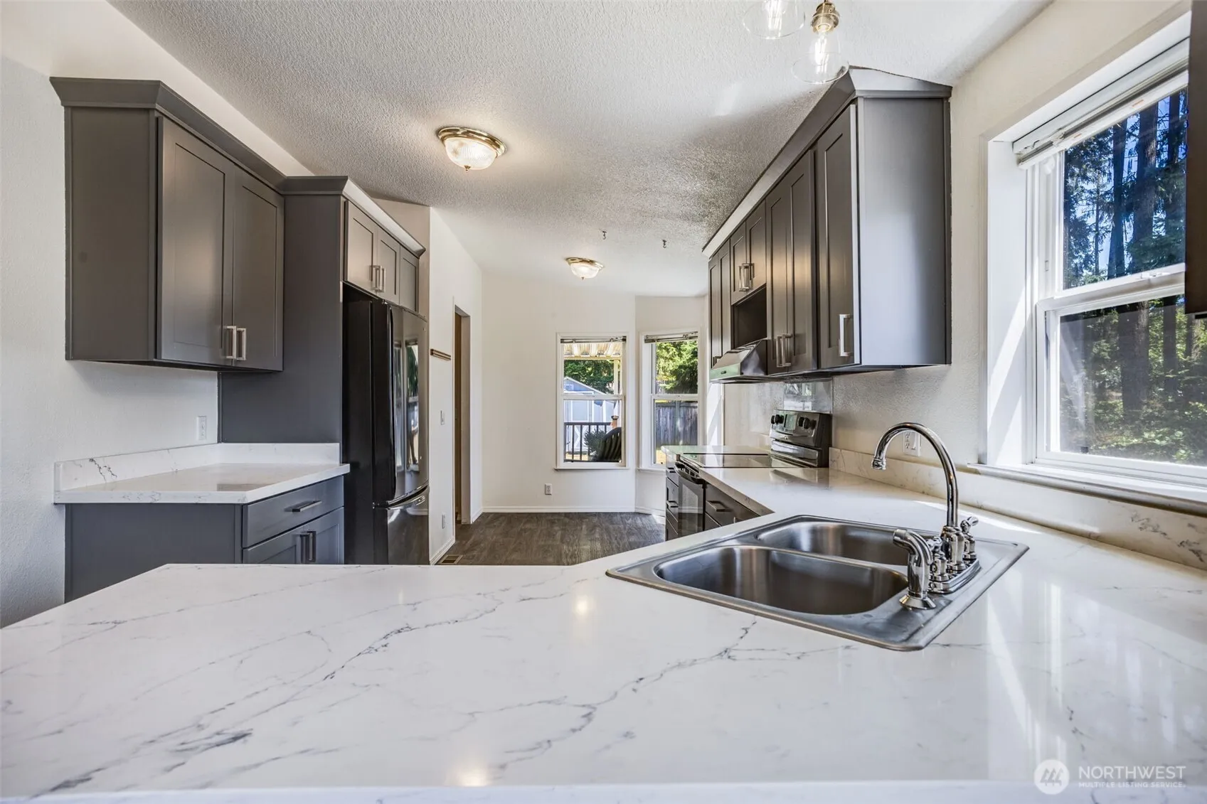 Welcome home to this well-maintained manufactured home, located in the Shady Woods Community, an all-ages park. This sweet home features a beautiful renovated kitchen, showcasing sleek granite countertops, updated cabinetry, and modern appliances, perfect for cooking and entertaining. Enjoy the comfort of newer flooring throughout, with a mix of cozy carpet and stylish laminate. The spacious primary bedroom includes a 5-piece suite bathroom, located separate from the rest of the rooms, perfect for added privacy. Enjoy the summer afternoons on the covered back porch. The fully fenced back yard gives you the perfect place to entertain. Restaurants, shopping, and amenities are just blocks away. Come and make it yours!