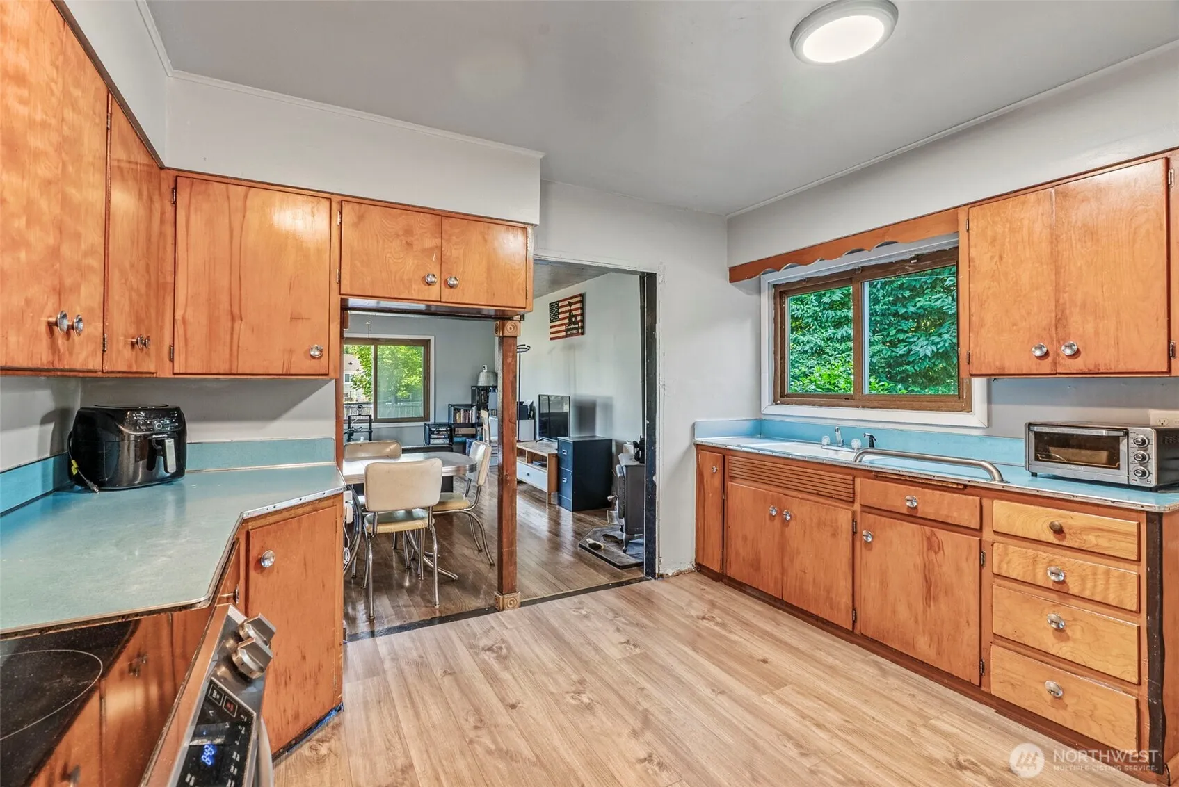 Welcome to this timeless 3-bedroom, 1-bathroom home nestled on a quiet dead-end street, where classic character meets modern comfort. Built in 1925, this home sits on a large, tree-filled lot offering incredible outdoor living and garden potential. Step inside to find a spacious living room that opens up to the kitchen, complemented by a beautifully updated bathroom and three bedrooms. A large laundry/mud room takes you out back where you’ll fall in love with the spacious yard – perfect for entertaining, gardening, swimming in the pool, or simply relaxing under the canopy of mature trees. A detached garage brings lots of options for storage, parking, workout room, etc. New updates include: electrical panel, roof, and flooring.