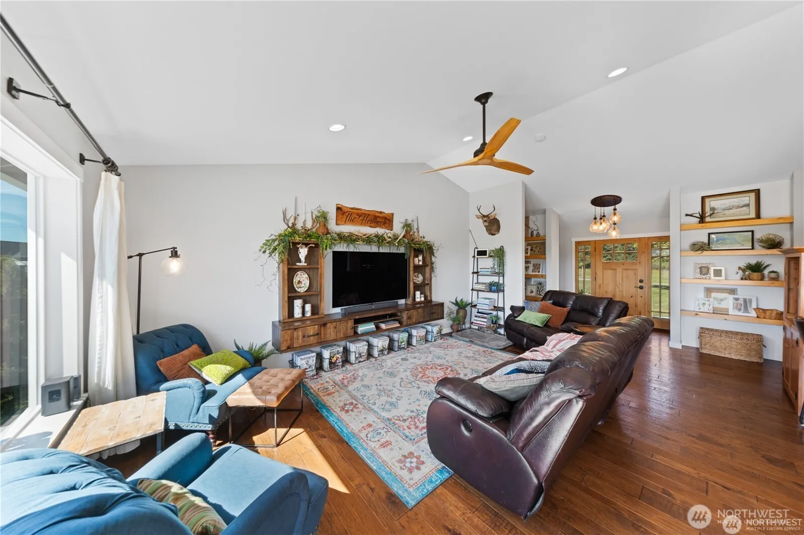 Enjoy peaceful one-level living on acreage with partial mountain views in this newer home. Vaulted ceilings and an open layout connect the kitchen and living area, while a bright office with French doors offers flexible space. The primary suite features two walk-in closets, dual sinks, and a soaking tub with a view. Step out to a large deck, paved patio, and firepit—perfect for relaxing or entertaining. You’ll also find a fenced garden, chicken coop, and space for your dream hobby farm. The detached shop offers tons of storage and a loft—plus a separate apartment, ideal for guests.