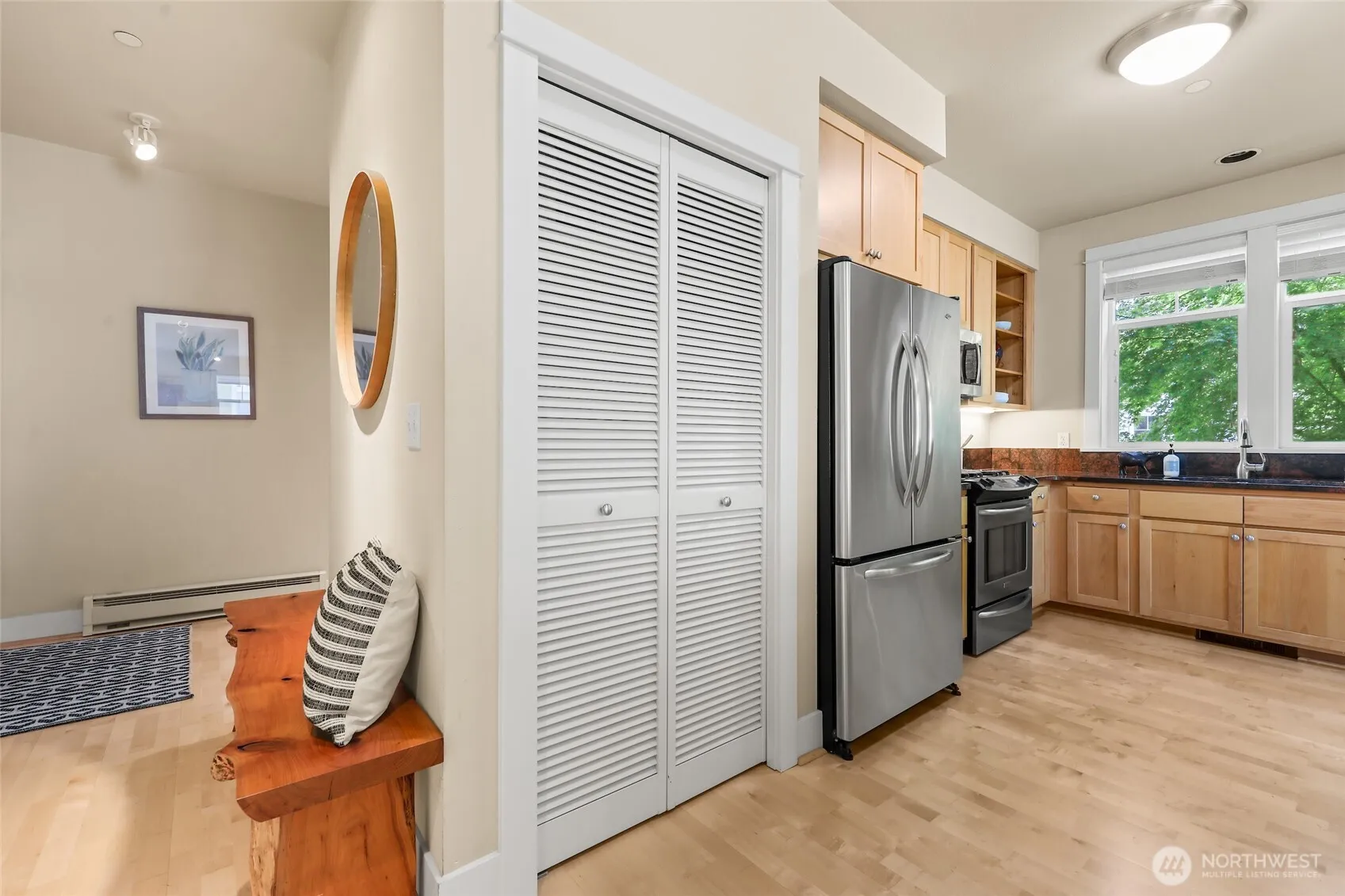 Experience the ideal balance of peaceful living and in-town convenience. Tucked away in a serene, sunny courtyard setting, this inviting home is just steps from Winslow’s charming shops, restaurants, grocery stores and the ferry. Inside, you’ll find soaring ceilings, expansive windows, and a light-filled, open-concept design that feels both welcoming and spacious. The kitchen is both stylish and functional, featuring granite countertops, stainless steel appliances, and a versatile dining area—perfect for intimate meals or entertaining guests. Enjoy true main-floor living with no steps—access your home easily from the parking area via elevator. A quiet retreat in the center of it all!