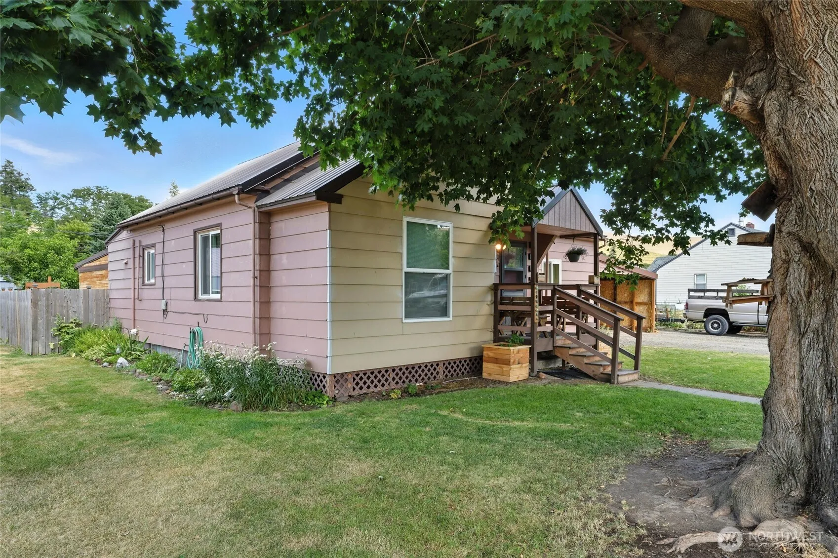 Hurry on this ADORABLE AFFORDABLE home! This 1922 sq ft home with 1192 feet on the main level which has beautiful laminated flooring, spacious living room, Country style Kitchen, dining area, 2 bedrooms, full bath & laundry on main. The lower level w/780 sq ft has a large Bonus room, family room, Storage room & 1/2 bath which has an unfinished shower that could be completed to have a 3/4 bath down. The window is not to code for 3rd bedroom. The home has a single car garage & adjoining shop area and it has its own 1/2 bath as well. There is a 2 car covered carport w/additional storage areas. It has Alley access. There is RV dumping spot & there is area for RV/Boat/Vehicle parking. Also, there are garden beds & room for fruit trees or?
