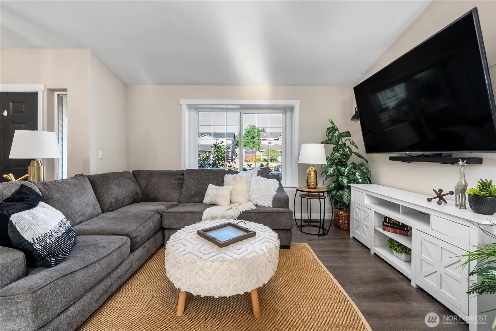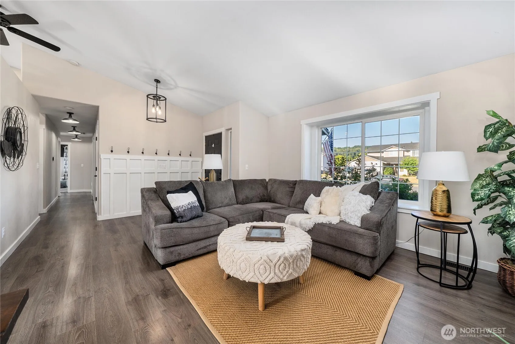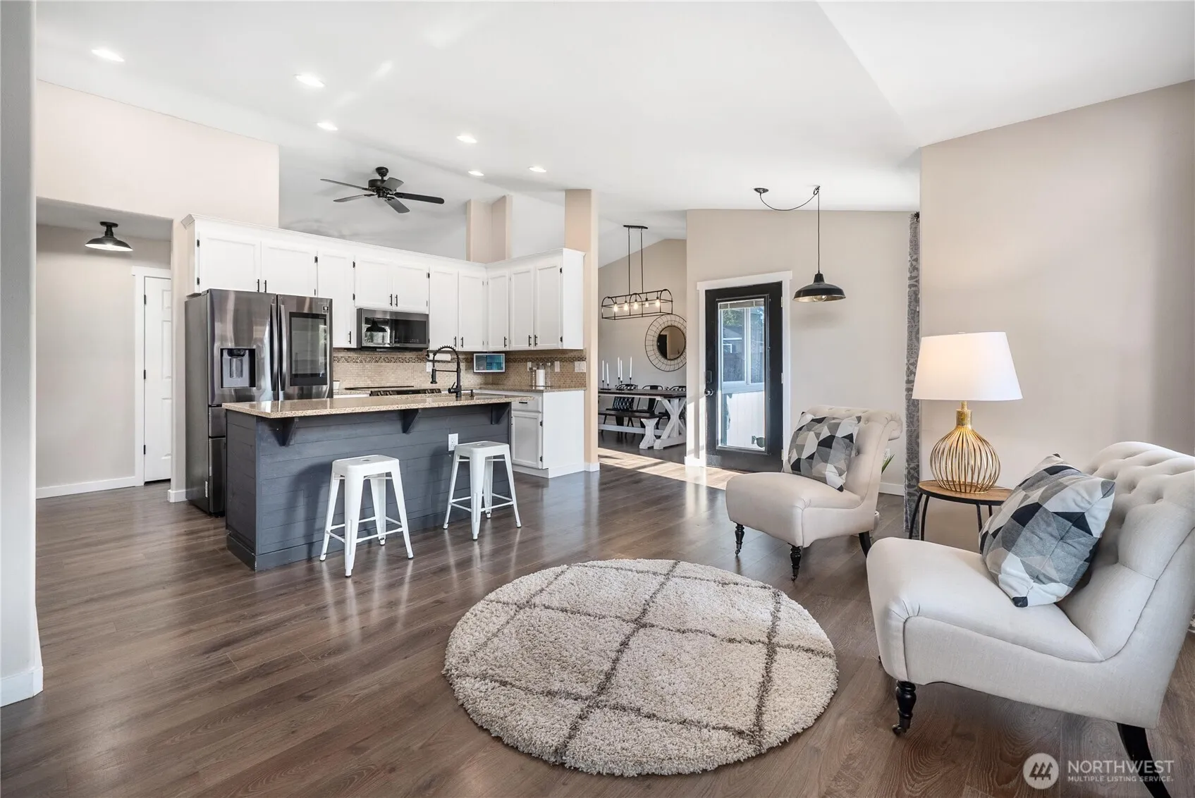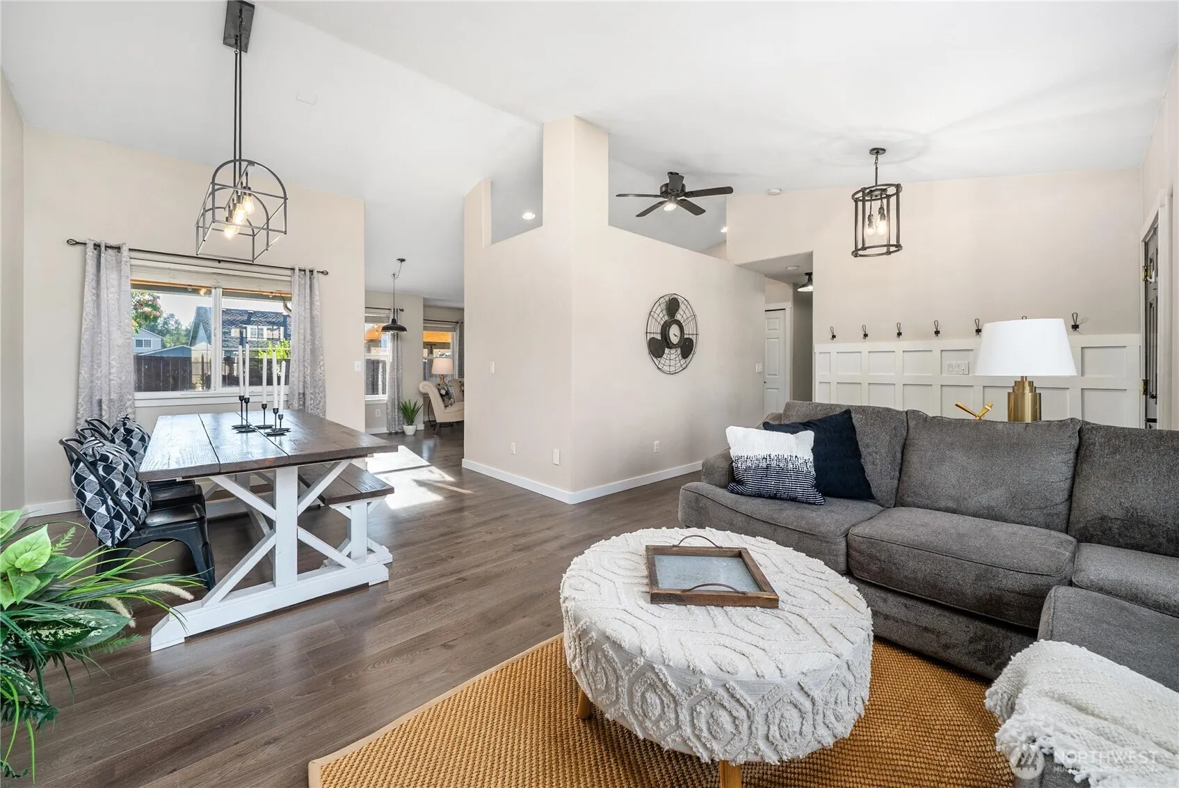 Compelling new price! The desirable Whitehawk neighborhood of Orting. Enjoy living in this highly sought-after small town with Mount Rainier as your scenic backdrop. Inside, you will be greeted by tall vaulted ceilings, walls of windows, and loads of natural light. The best floor plan features a great room, kitchen, and a lovely outdoor living space to create year-round memories. Find your zen here; check out your spacious primary suite. A long list of well-planned updates includes AC, RV parking with power, a generator hookup, a gas line for outdoor living and BBQ. New paint, vinyl plank floors, and numerous improvements a modern delight, move-in ready. Fully fenced backyard. Bring your toys load up for your weekend escape!