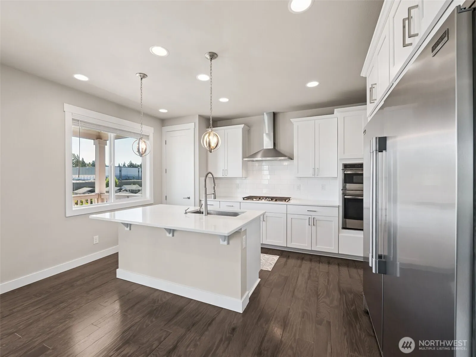 Welcome home to this beautiful like-new home in Blueberry Lane with over $50,000 in upgrades. The open-concept layout includes a spacious great room, a chef’s kitchen with quartz countertops, SS appliances. Upstairs, a primary suite with a deluxe bath, walk-in closet, additional bedrooms and a loft space. The lower level serves as an en suite bedroom or large multi-use space. The covered patio has a hose bib and gas BBQ hookup. Upgrades feature: hardwood floors on main level, recessed lighting throughout, additional insulation between the main& lower level, EV charger, wood wrapped windows, upgraded interior doors, 9ft ceiling in lower level and AC. Easy access to I-5, Seatac, light rail and parks.