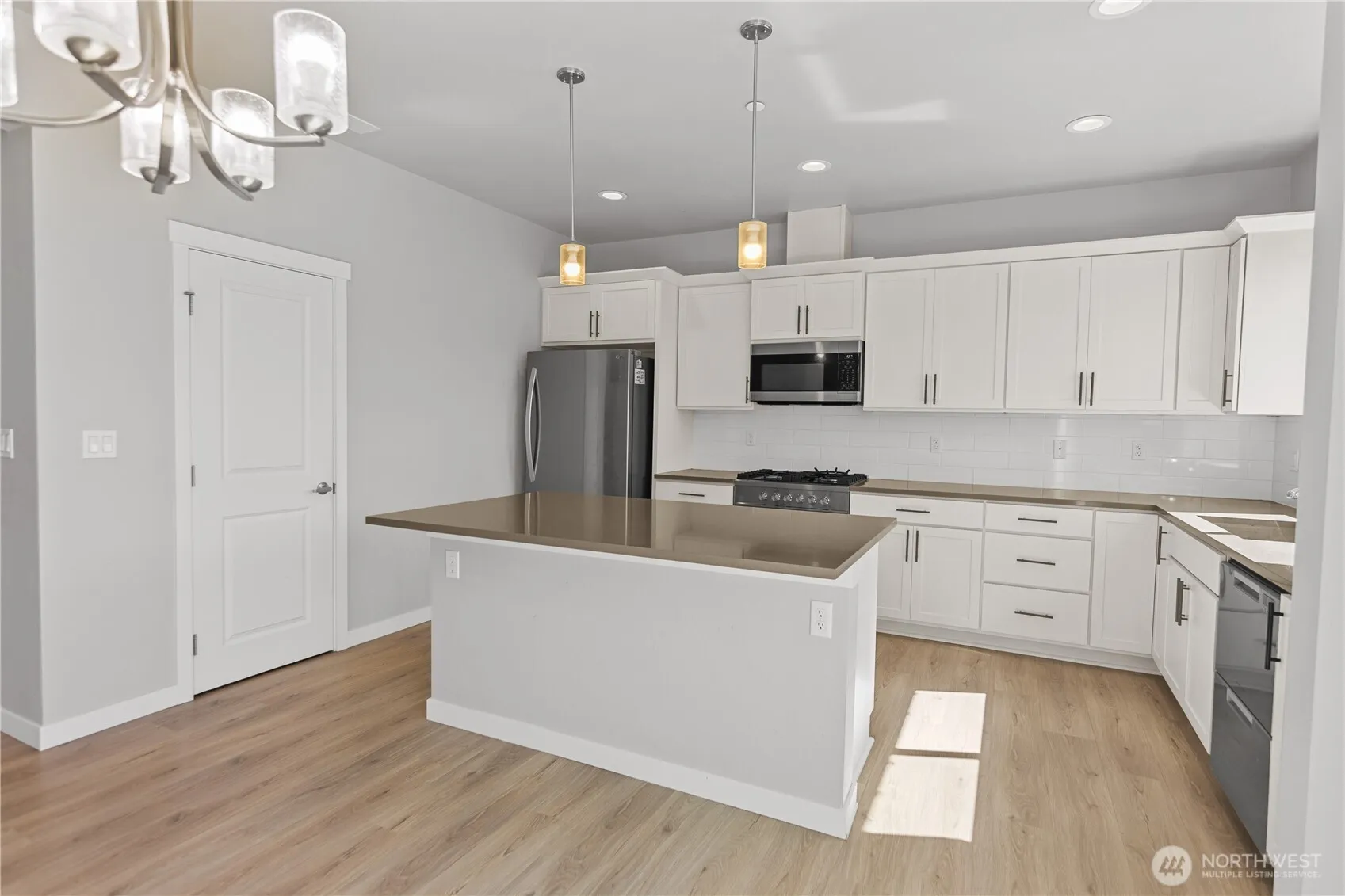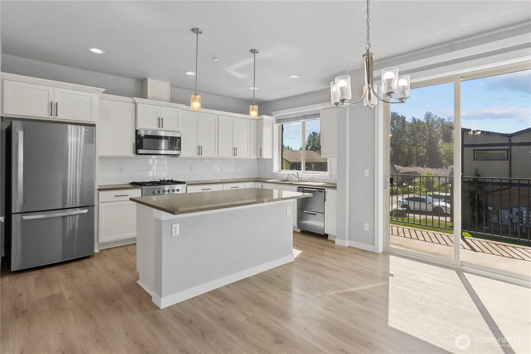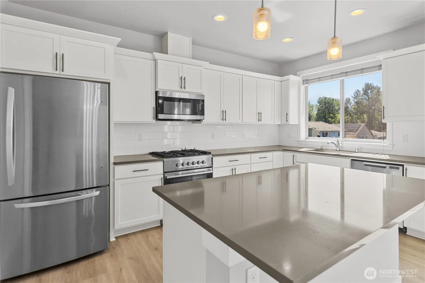 Spacious 5-bedroom, 3.25-bath, 3-level home with designer contemporary finishes and carefree living. Main level has an open living room with fireplace, dining area, and large kitchen. Upstairs, the oversized primary suite features double doors, a huge walk-in closet, and a spa-like bath with MAAX soaking tub and designer tile. Laundry is conveniently upstairs. Lower level offers a flexible bedroom (or office/playroom) with attached bath, next to the 3-car garage. Comfort year-round with efficient systems: Trane central A/C, 95% heating, tankless water heater, and sprinkler system. Two decks for outdoor living. Community dog park and play structure. Ideally located between Seattle and Tacoma for easy commuting.